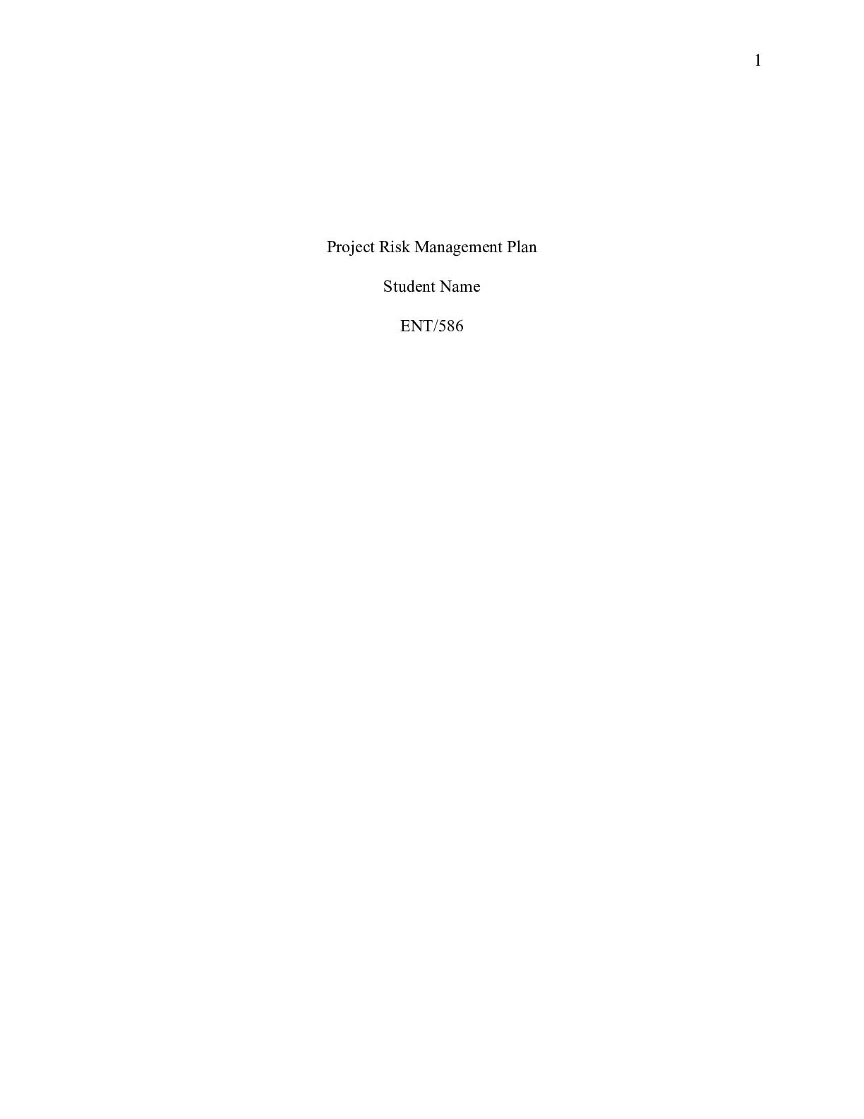 Business > CASE STUDY > ENT586_week 5.doc Project Risk Management Plan Student Name ENT/586 Project Risk Mana (All)