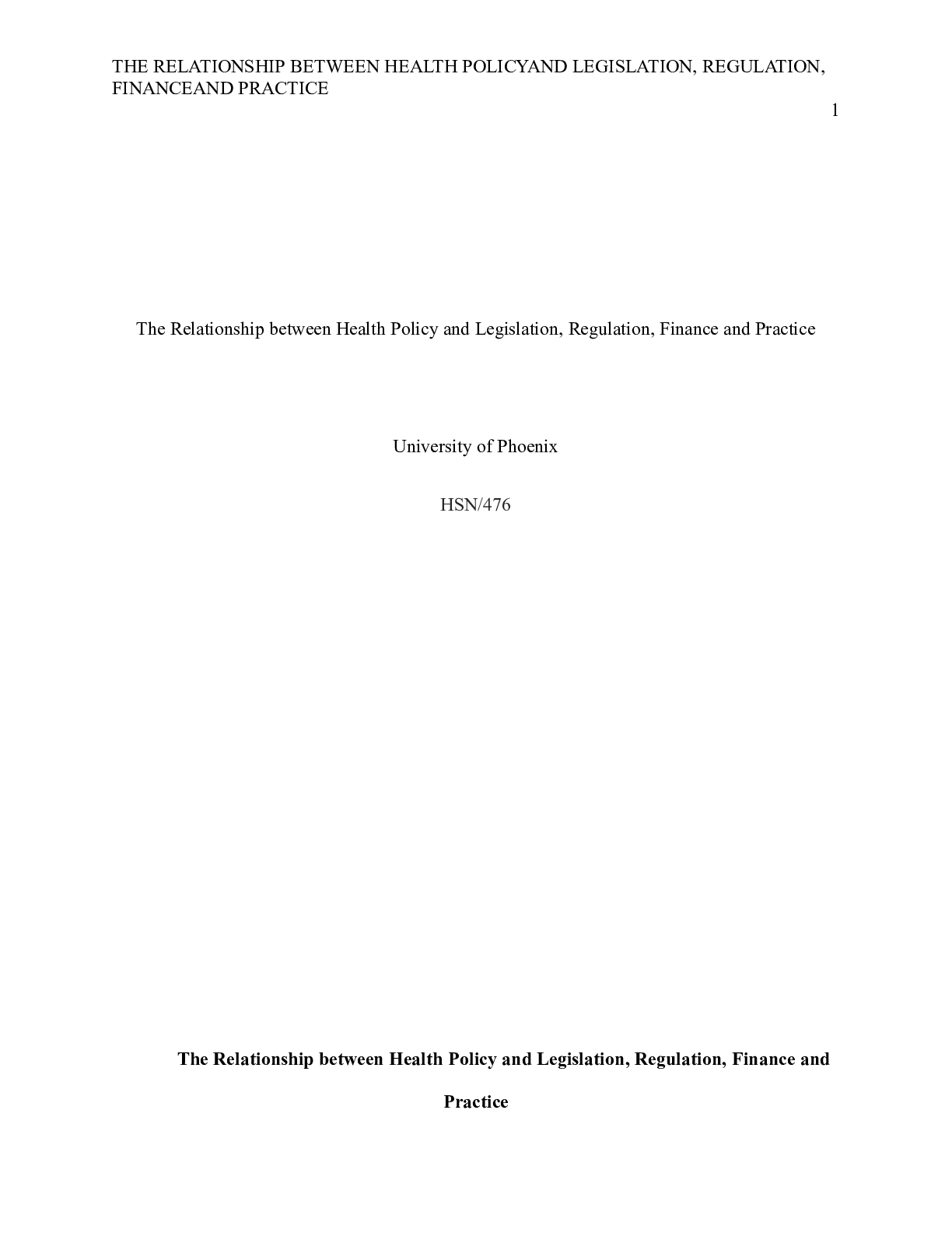 Business > CASE STUDY > The Relationship between Health Policy and Legislation, Regulation The Relationship bet (All)