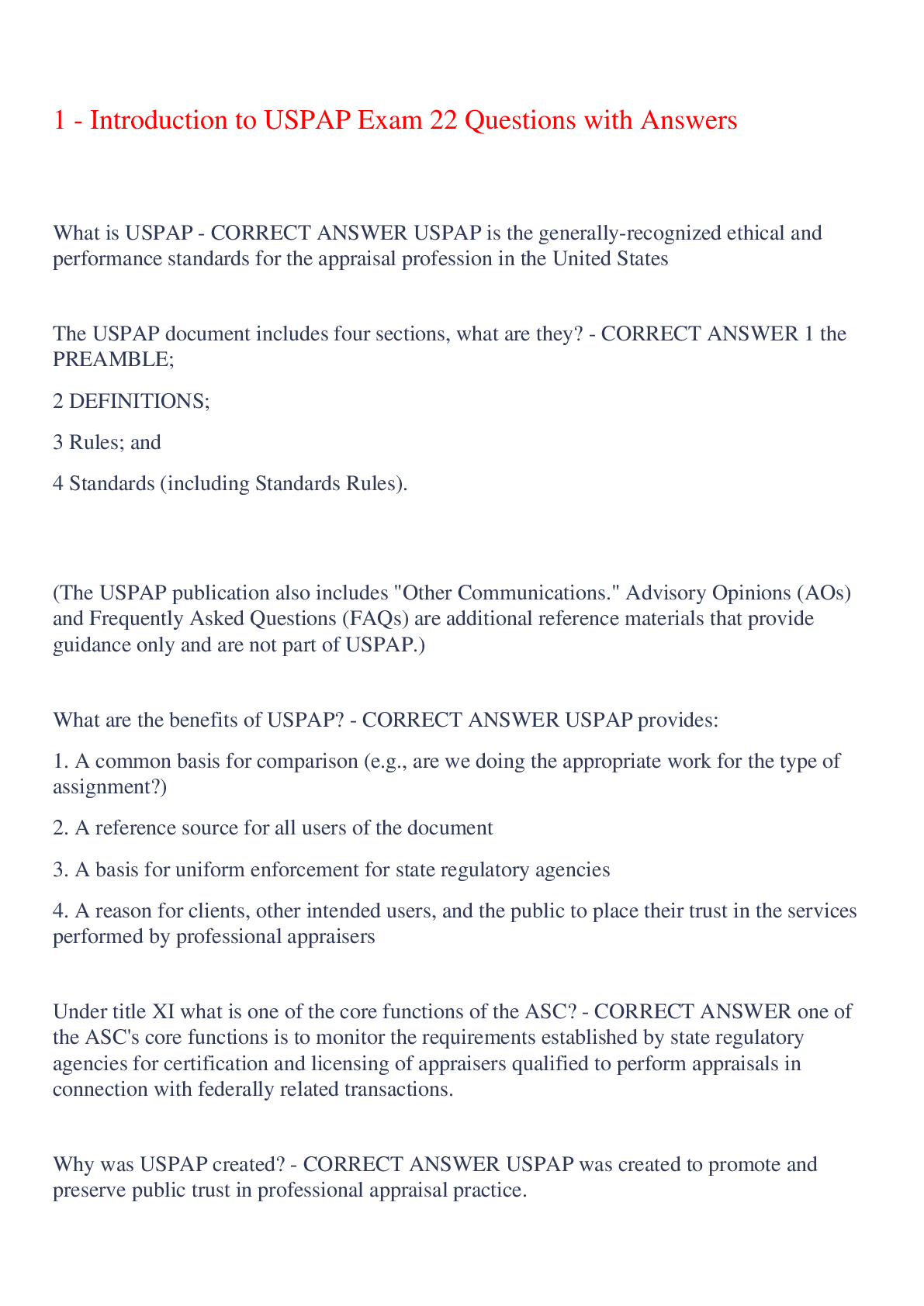 Business > EXAM > 1 - Introduction to USPAP Exam 22 Questions with Answers,100% CORRECT (All)