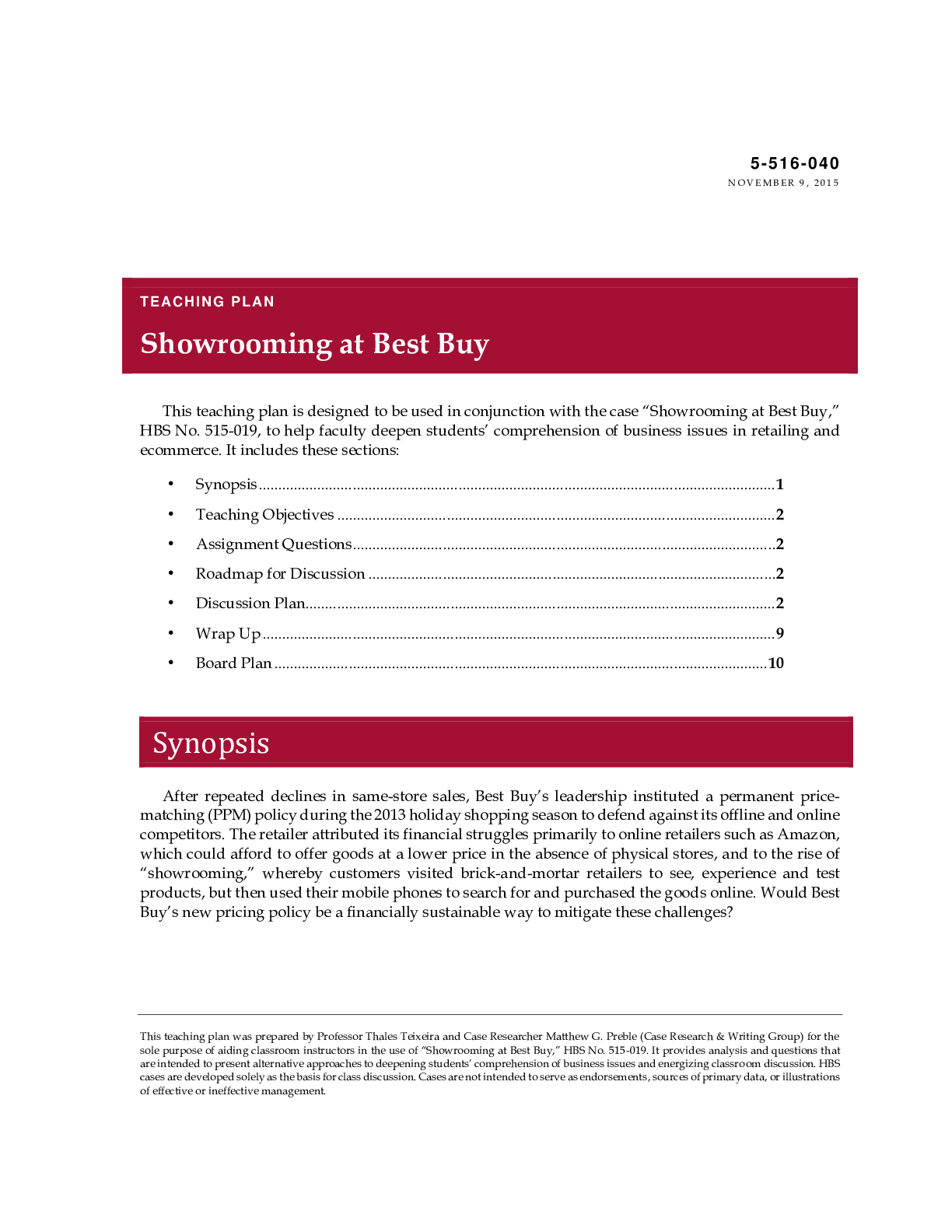 Business > CASE STUDY > Showrooming at Best Buy, By Thales S. Teixeira, Elizabeth Anne Watkins (Case Notes/ Answer with Free Case File) (All)