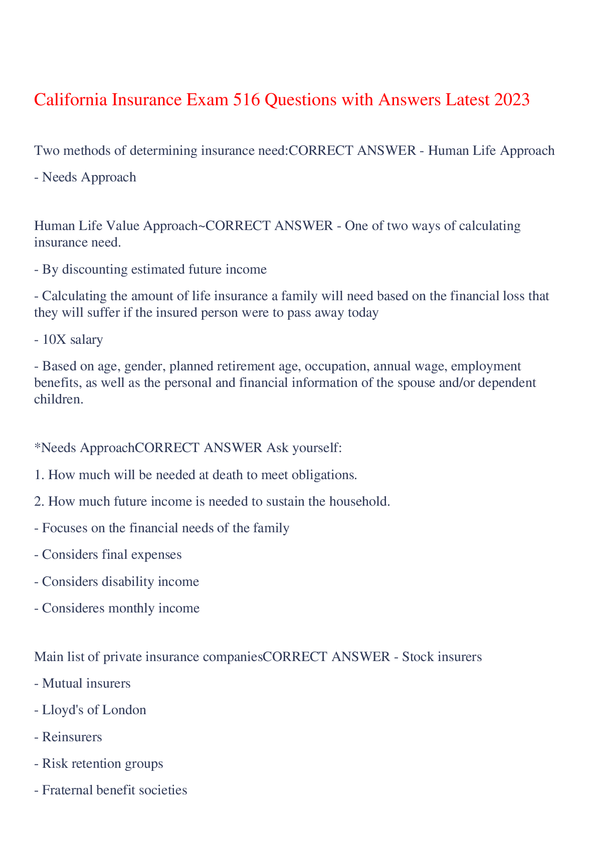 Business > EXAM > California Insurance Exam 516 Questions with Answers Latest 2023,100% CORRECT (All)