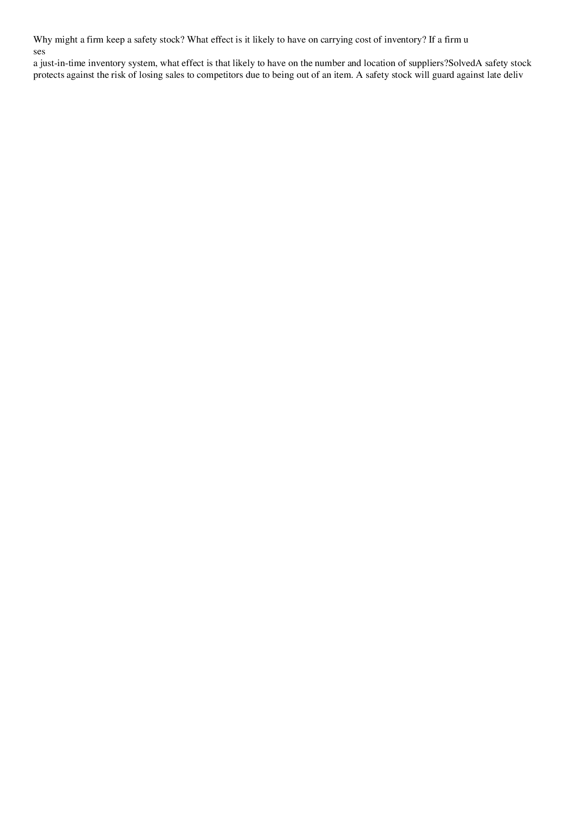 Business > EXAM > If a firm uses a just-in-time inventory system, what effect is that likely to (All)