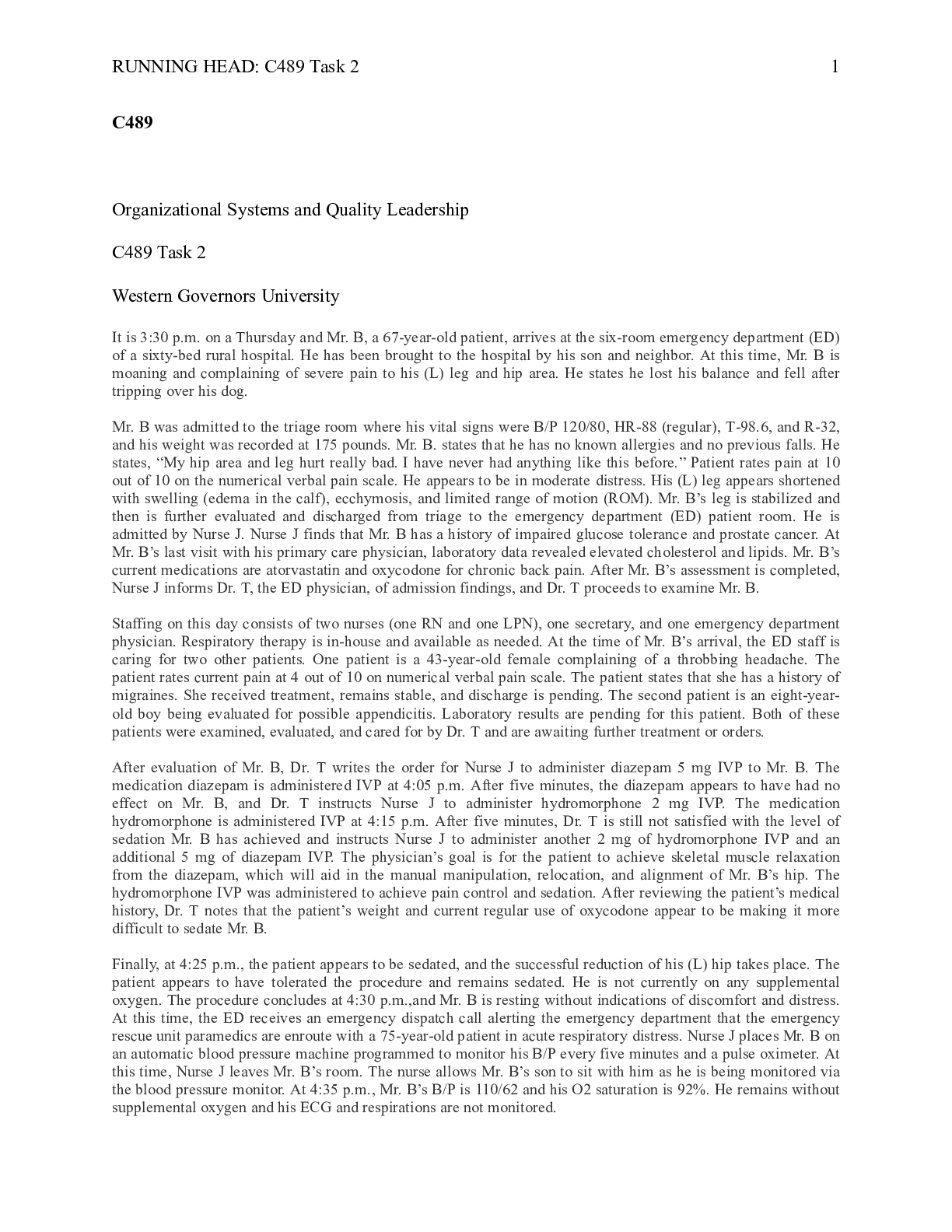 Business > CASE STUDY > C489_Task_2.docx (3) C489 Organizational Systems and Quality Leadership SAT Task 2 Wes (All)