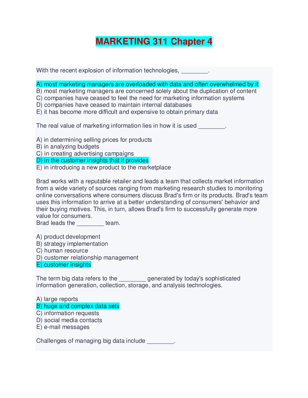 Business > A-Level Mark Scheme > MSIS 3223 EXAM 1 QUESTIONS AND 100% CORRECT ANSWERS (All)