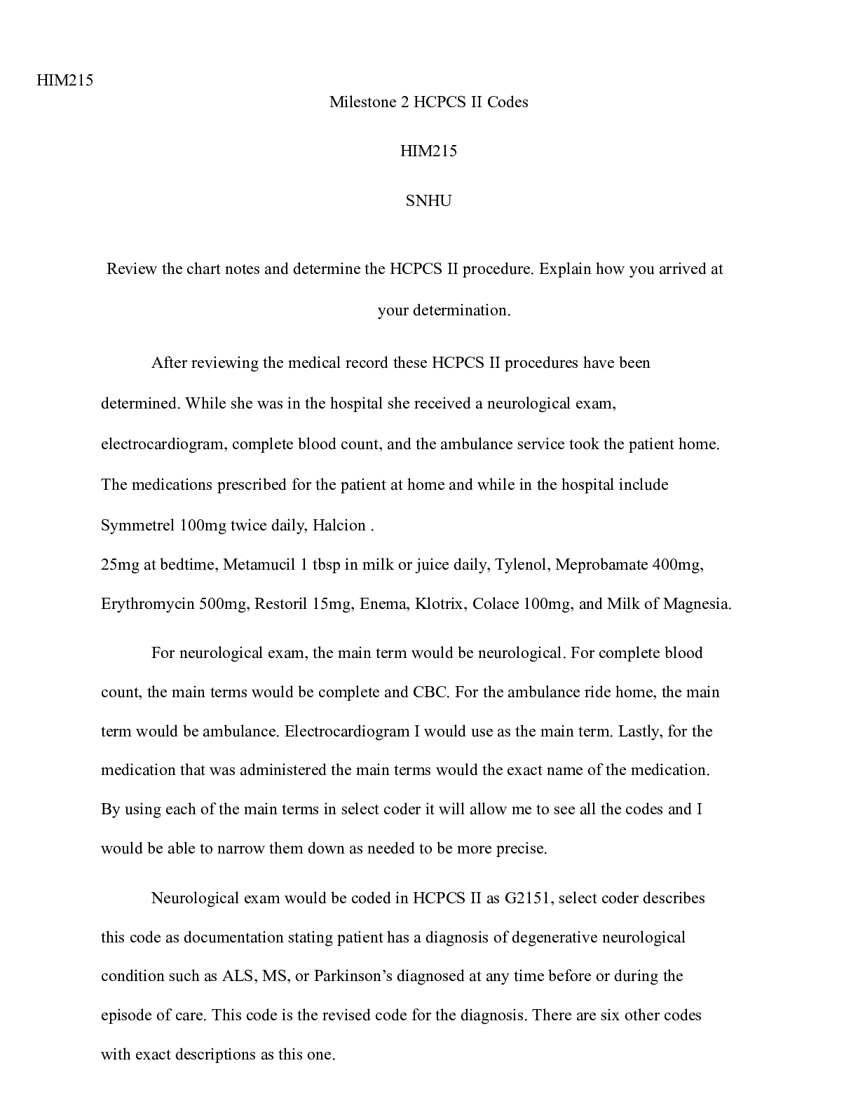 Business > CASE STUDY > Milestone 2 HCPCS II Codes| HIM215 Milestone 2 HCPCS II Codes HIM215 SNHU Review (All)