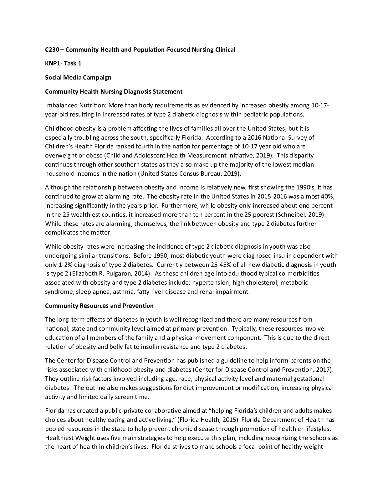 Business > CASE STUDY > C230 – Community Health and Population-Focused Nursing Clinical C230 – Community Health (All)
