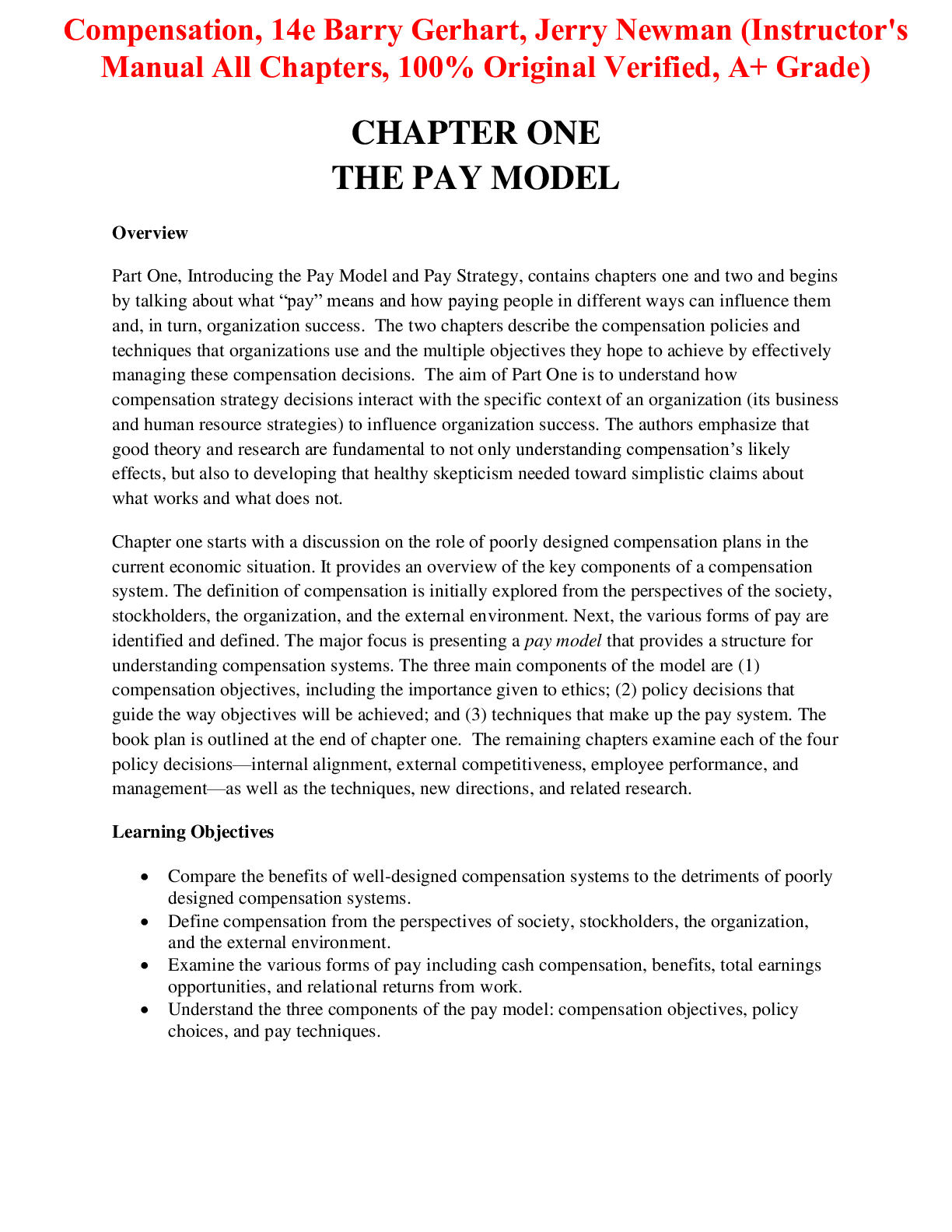 Business > INSTRUCTOR MANUALS > Instructor Manual for Compensation 14th Edition By Barry Gerhart, Jerry Newman (All Chapters, 100% Original Verified, A+ Grade) (All)
