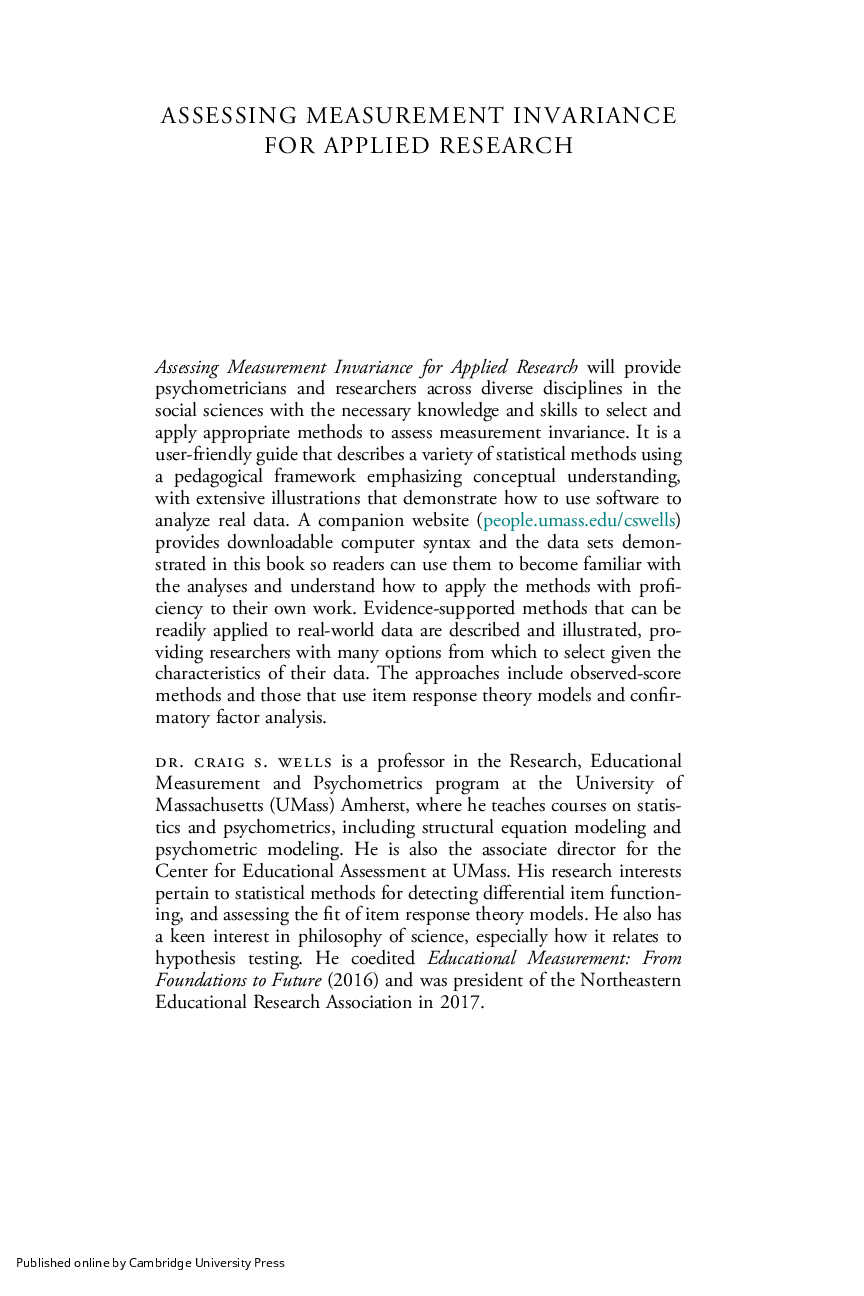Research Methods > eBook-PDF > eBook Assessing Measurement Invariance for Applied Research 1st Edition By Craig S. Wells (All)