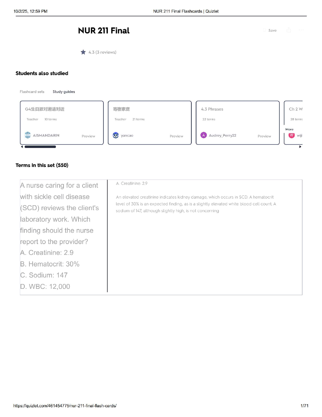 Business Research > Class Notes > 🩺 NUR211 – Sickle Cell Crisis | Study Guide | Verified Questions & Answers | (2025 Edition) (All)
