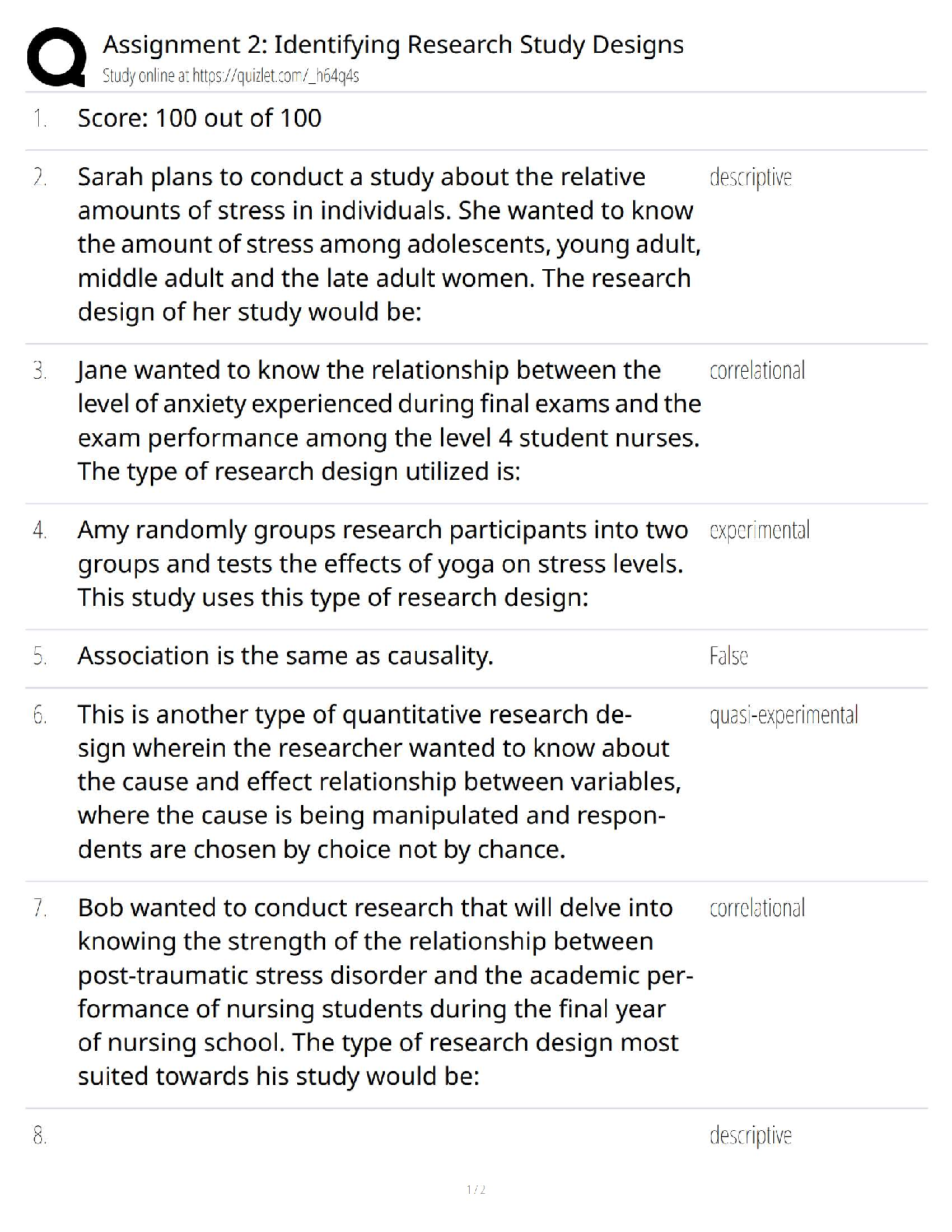 Business Research > QUESTIONS & ANSWERS > Assignment 2 – Identifying Research Study Designs / Exam Prep / 2025 Update / Score 100% / Study Guide + Test Bank / New Version (All)