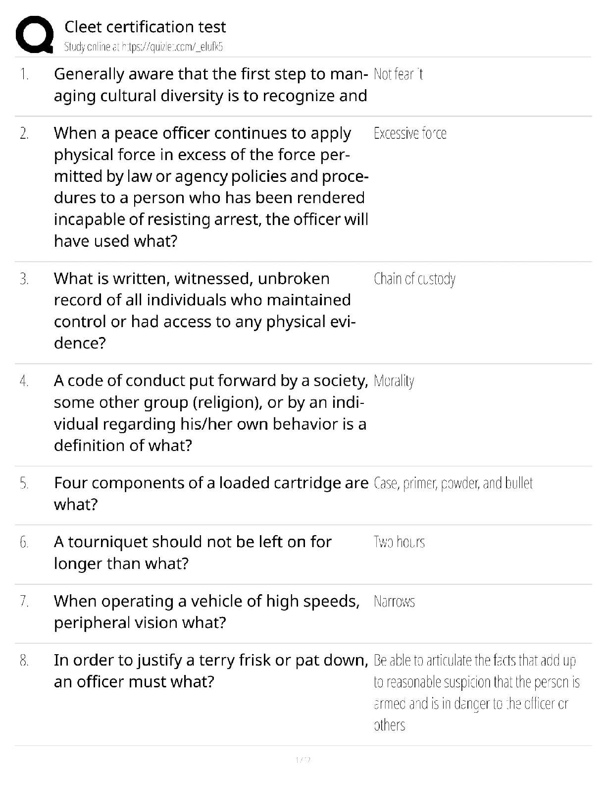 Cummunity Policing > QUESTIONS & ANSWERS > CLEET Certification / Practice Exam & Study Guide / 2025 Update / Score 100% (All)