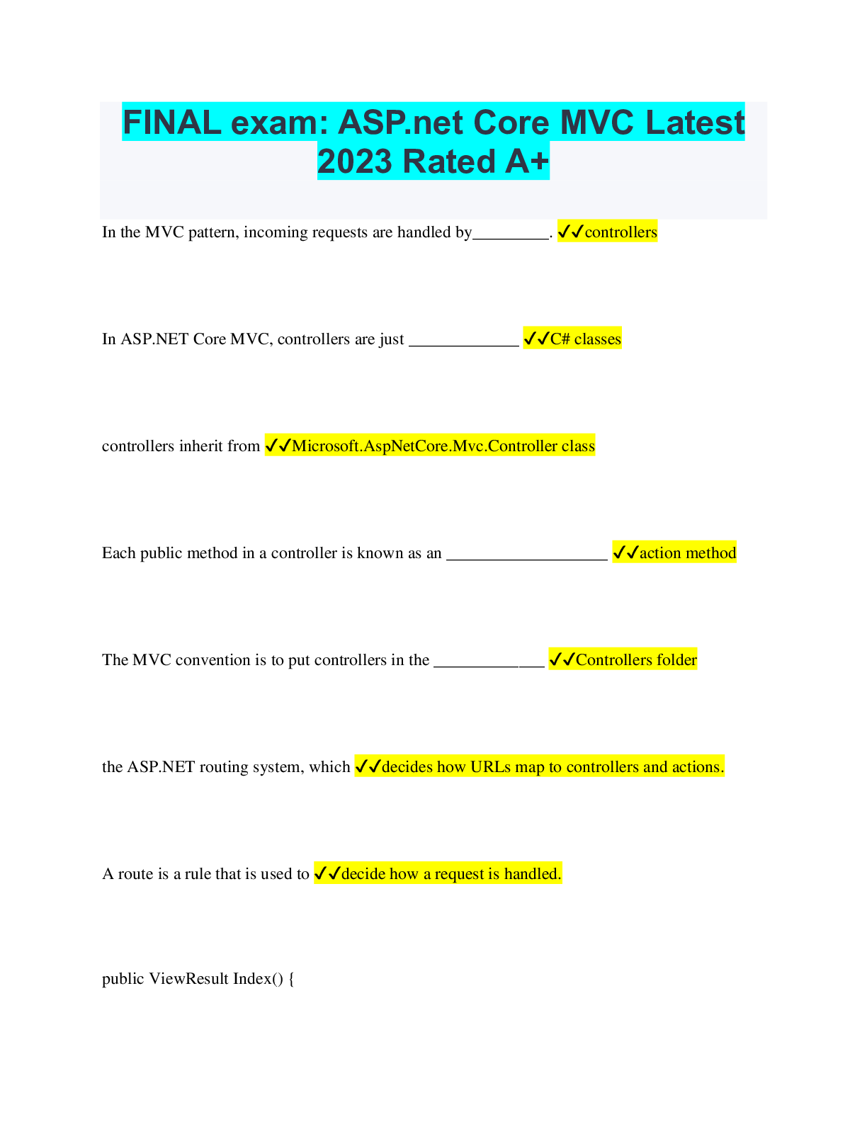 Military Science > QUESTIONS & ANSWERS > FINAL exam: ASP.net Core MVC Latest 2023 Rated A+ (All)