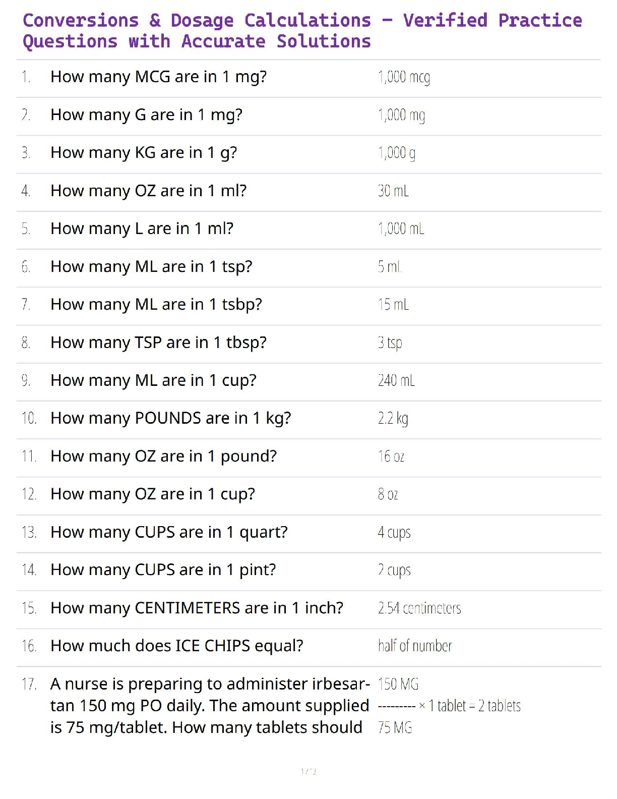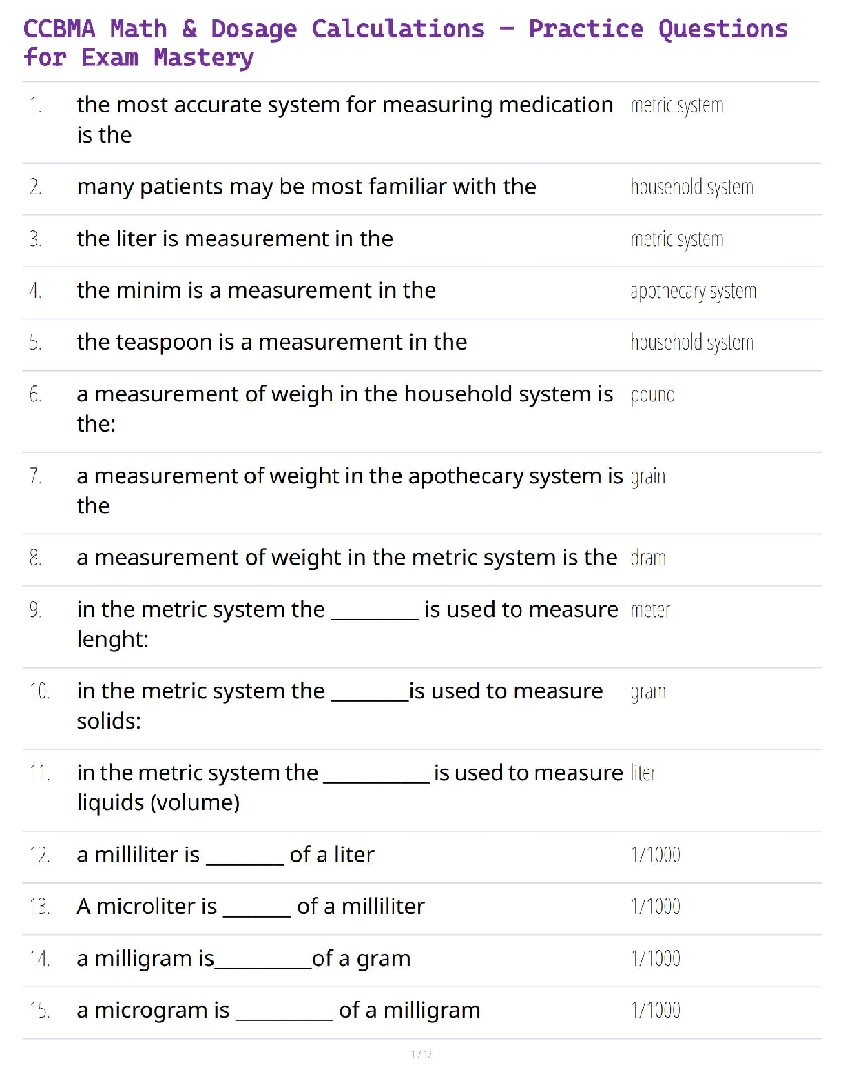 Pharmacology > QUESTIONS and ANSWERS > CCBMA Math & Dosage Calculations – Practice Questions for Exam Mastery (All)