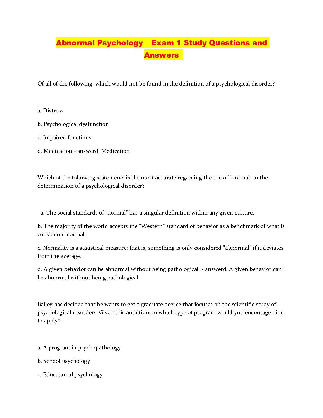 Pharmacology > QUESTIONS & ANSWERS > Abnormal Psychology Exam 1 Study Questions and Answers (All)