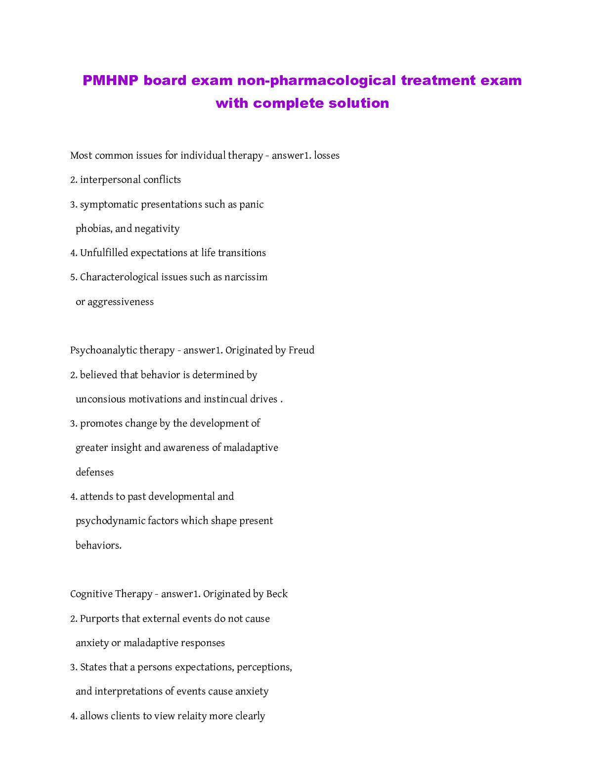 Pharmacology > QUESTIONS & ANSWERS > PMHNP board exam non-pharmacological treatment exam with complete solution (All)