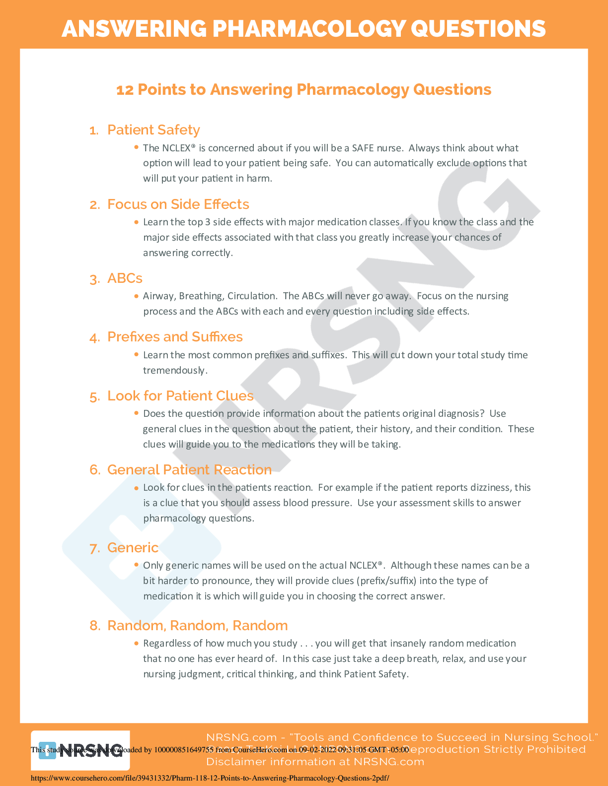Pharmacology > EXAM > Pharm-1.18-12-Points-to-Answering-Pharmacology-Questions-2 (All)