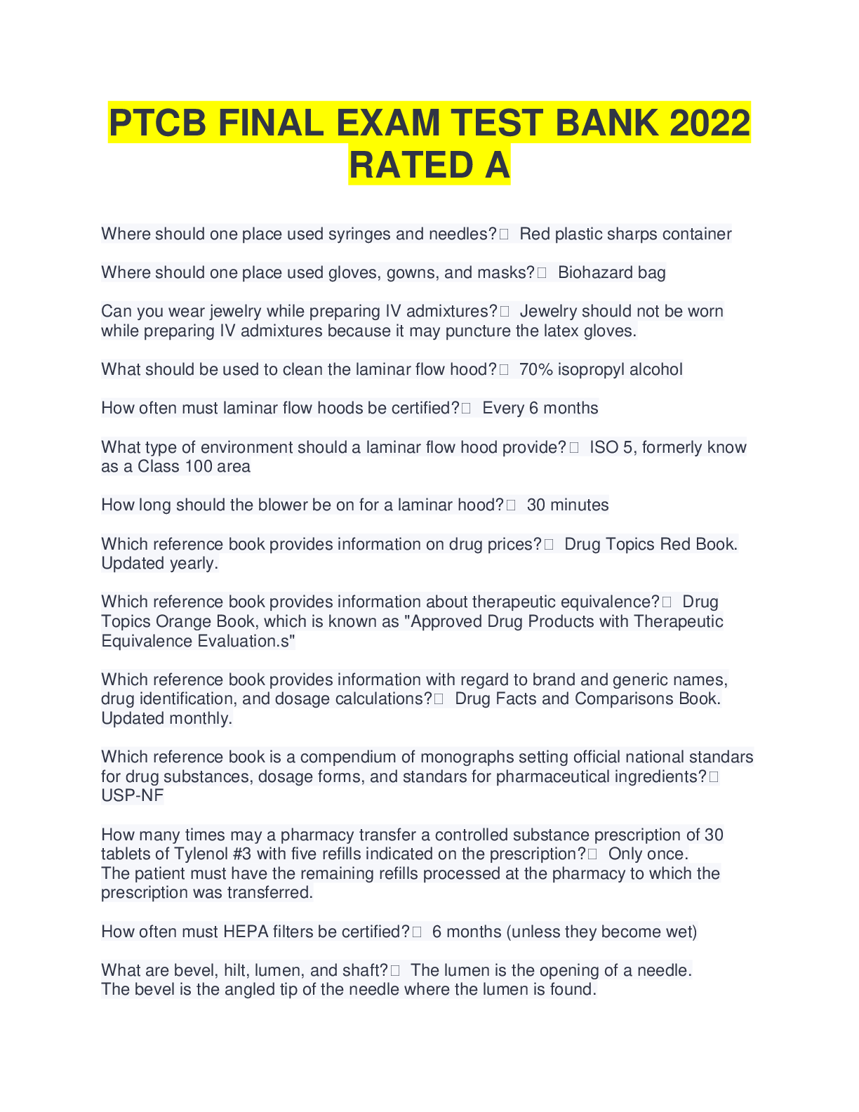 Pharmacology > TEST BANKS > PTCB FINAL EXAM TEST BANK 2022 RATED A (All)