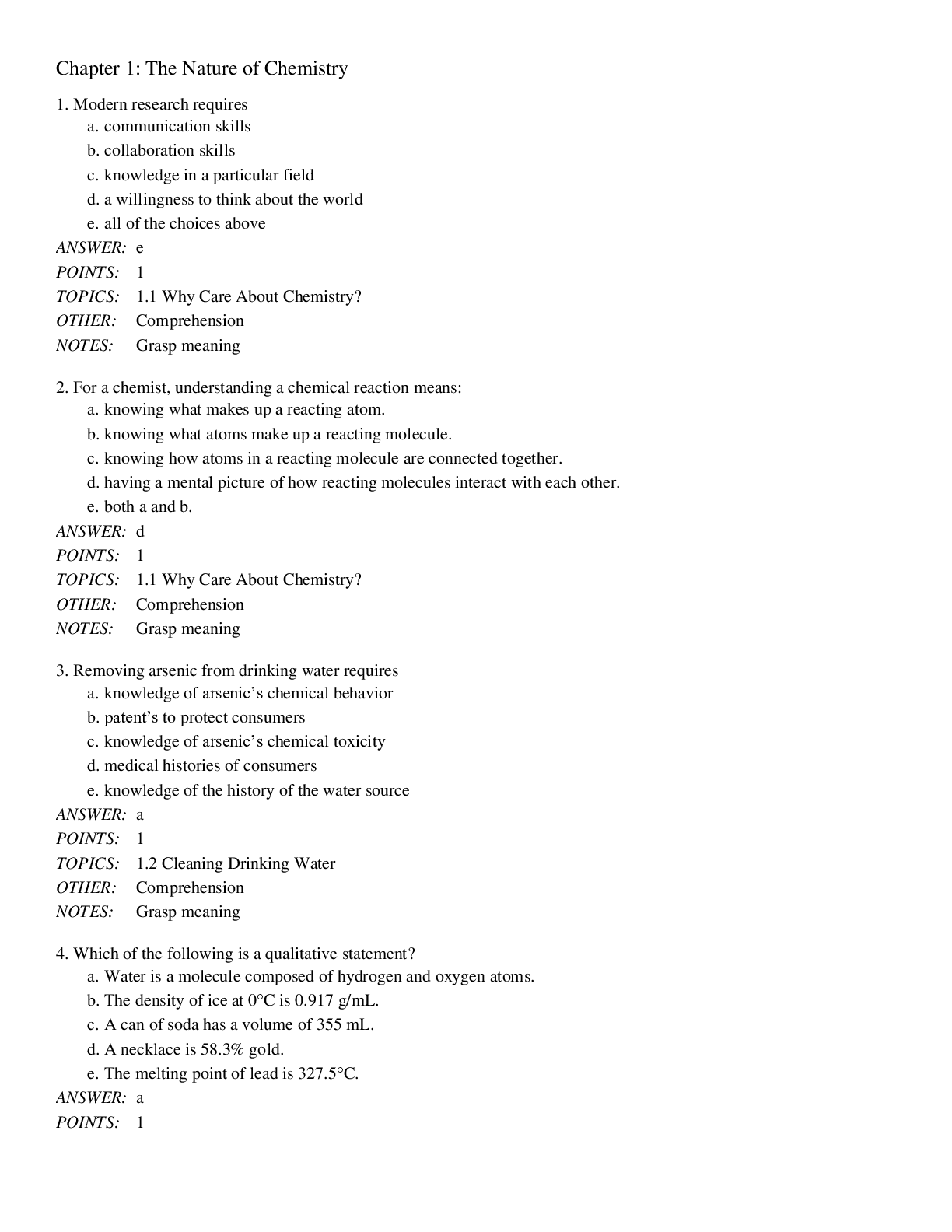 Chemistry > TEST BANKS > Chemistry, 10e Steven Zumdahl Susan Zumdahl (Test Bank) (All)