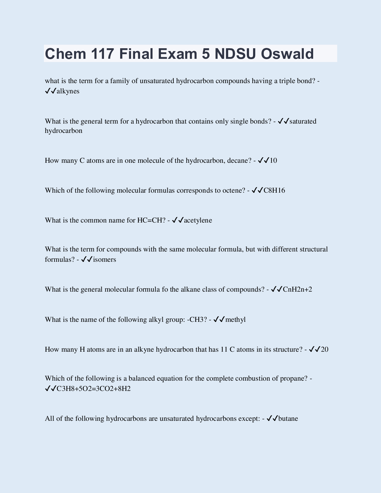 Chemistry > EXAMs > Chem 117 Final Exam 5 NDSU Oswald | Questions with 100% Correct Answers | Updated & Verified (All)