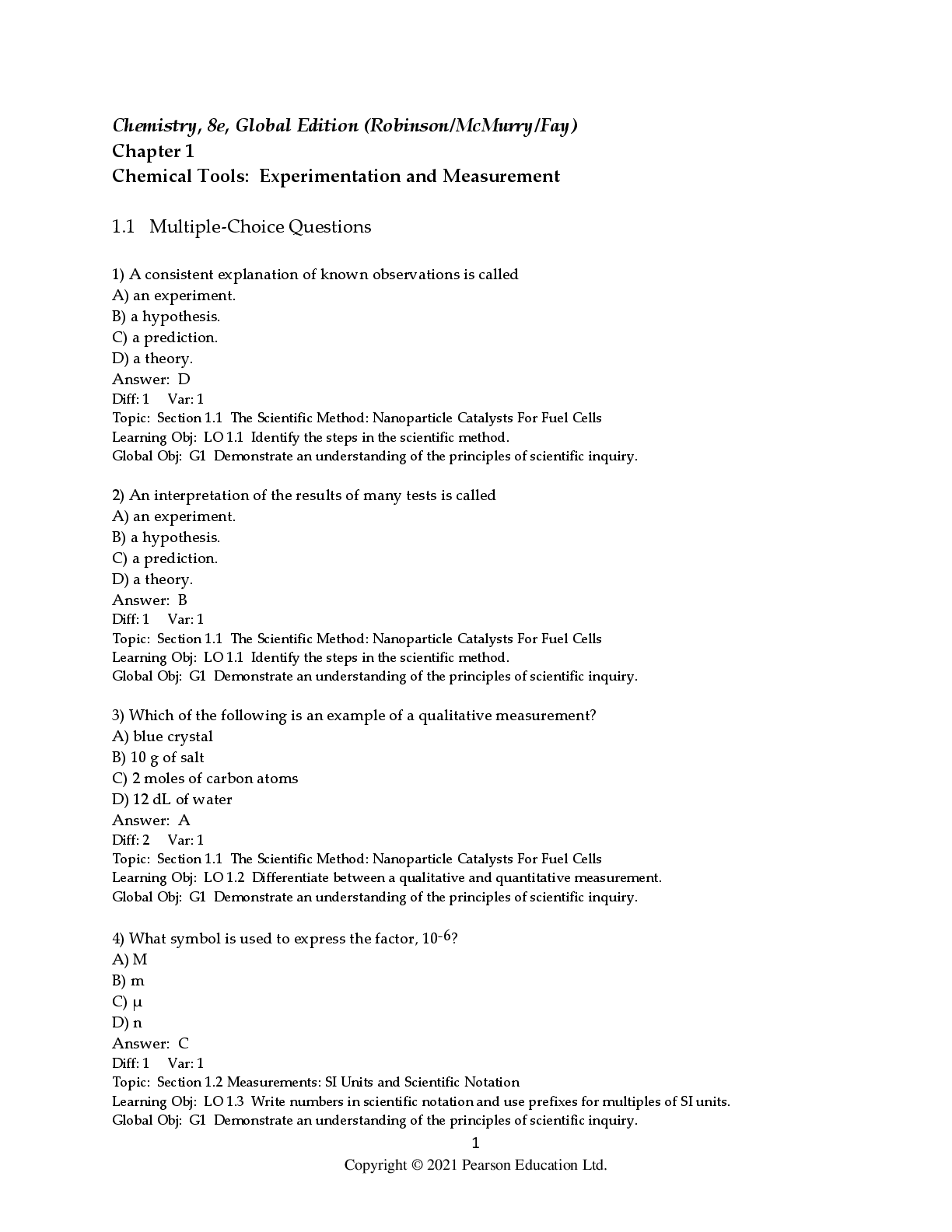 Chemistry > TEST BANKS > Test Bank for Chemistry 8th Edition (Global Edition) By Jill Kirsten Robinson, John McMurry, Robert Fay (All)