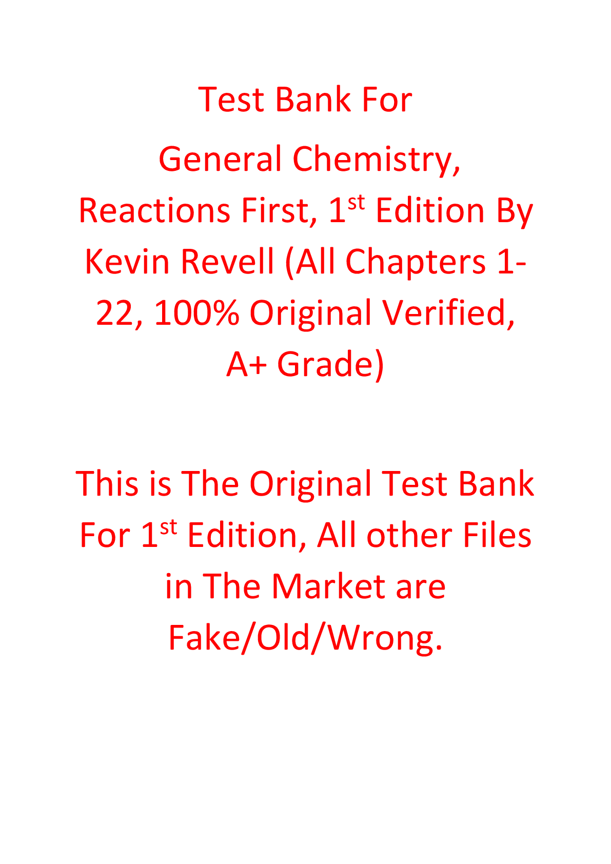 Chemistry > TEST BANKS > Test Bank For General Chemistry, Reactions First, 1st Edition By Kevin Revell (All)