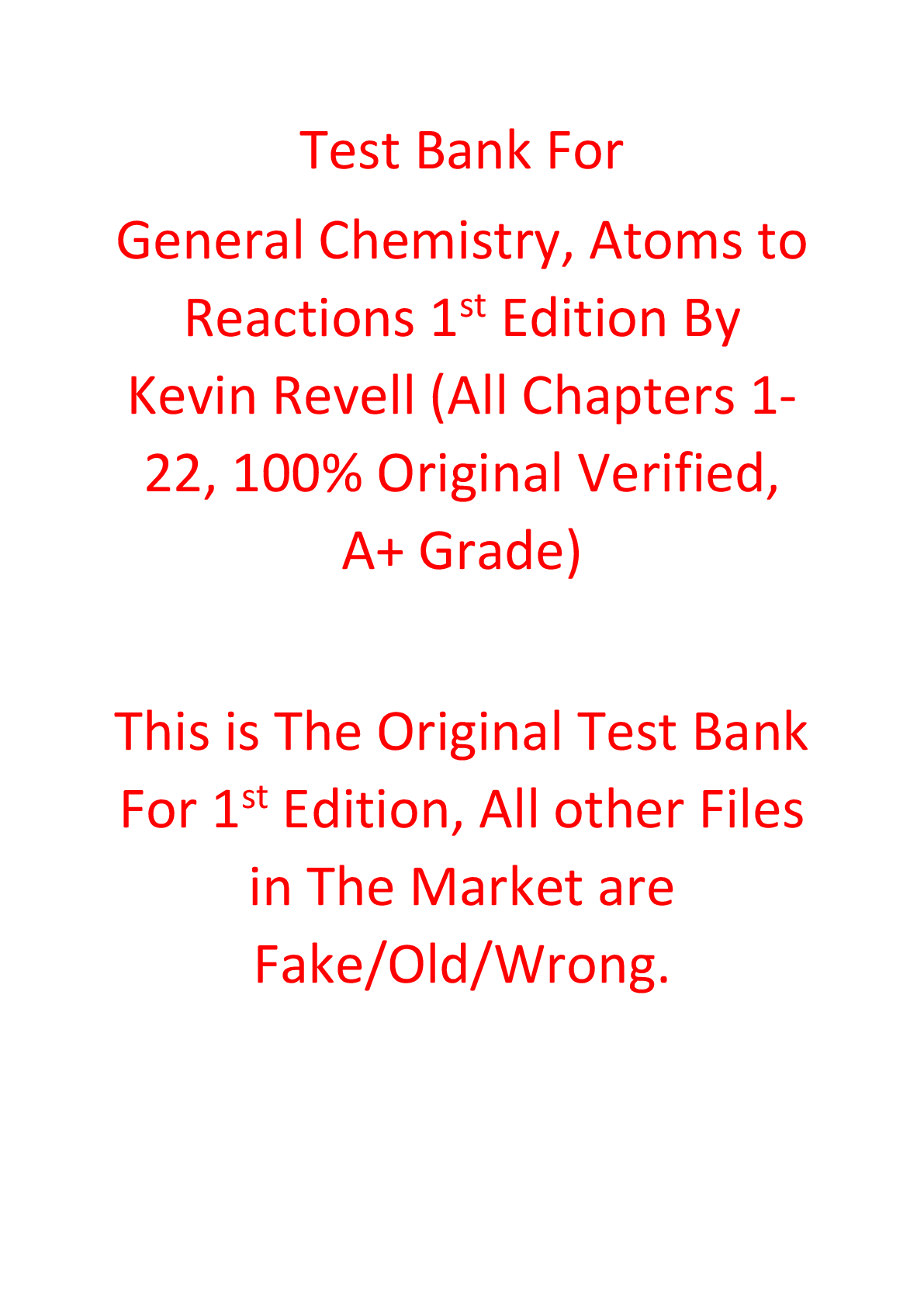 Chemistry > TEST BANKS > Test Bank For General Chemistry, Atoms to Reactions 1st Edition By Kevin Revell (All)