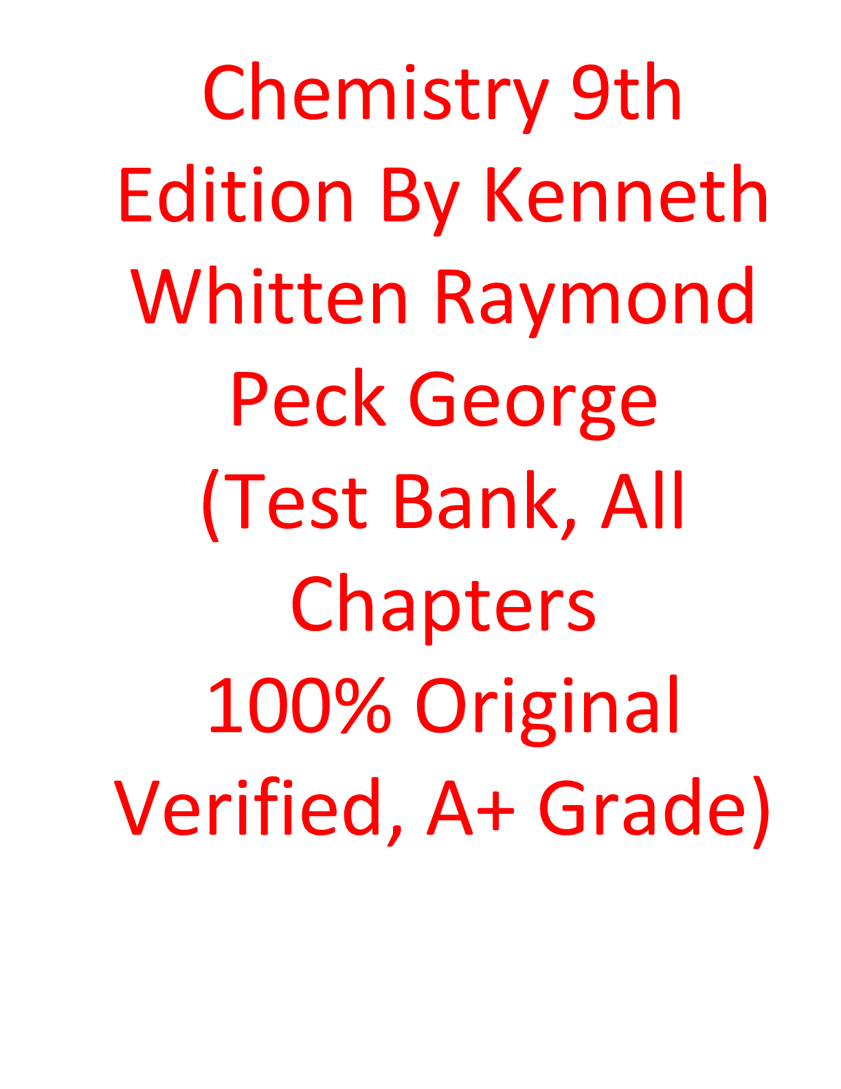 Chemistry > TEST BANKS > Test Bank For Chemistry 9th Edition By Kenneth Whitten Raymond Peck George (All)