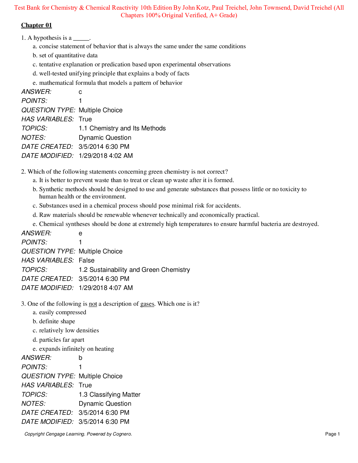 Chemistry > TEST BANKS > Test Bank for Chemistry & Chemical Reactivity 10th Edition By John Kotz, Paul Treichel, John Townsend, David Treichel (All Chapters 100% Original Verified, A+ Grade) (All)