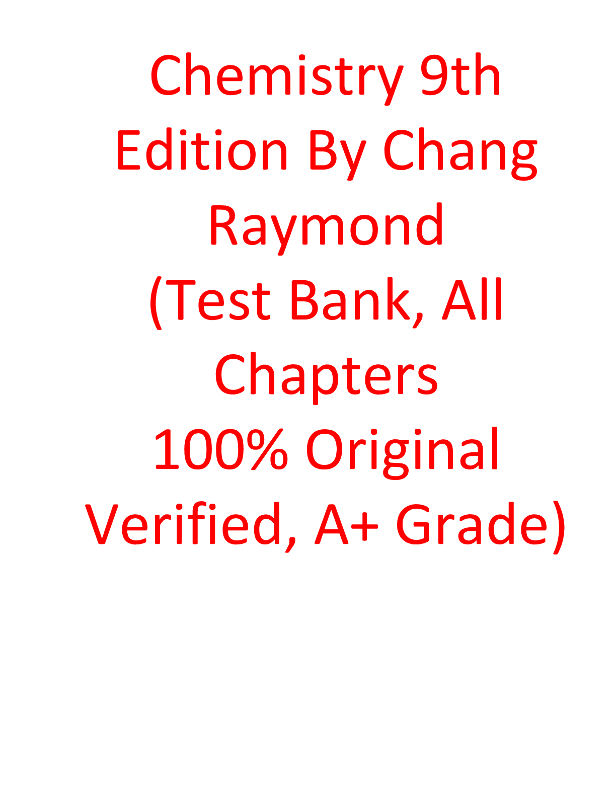 Chemistry > TEST BANKS > Test Bank For Chemistry 9th Edition By Chang Raymond (All)