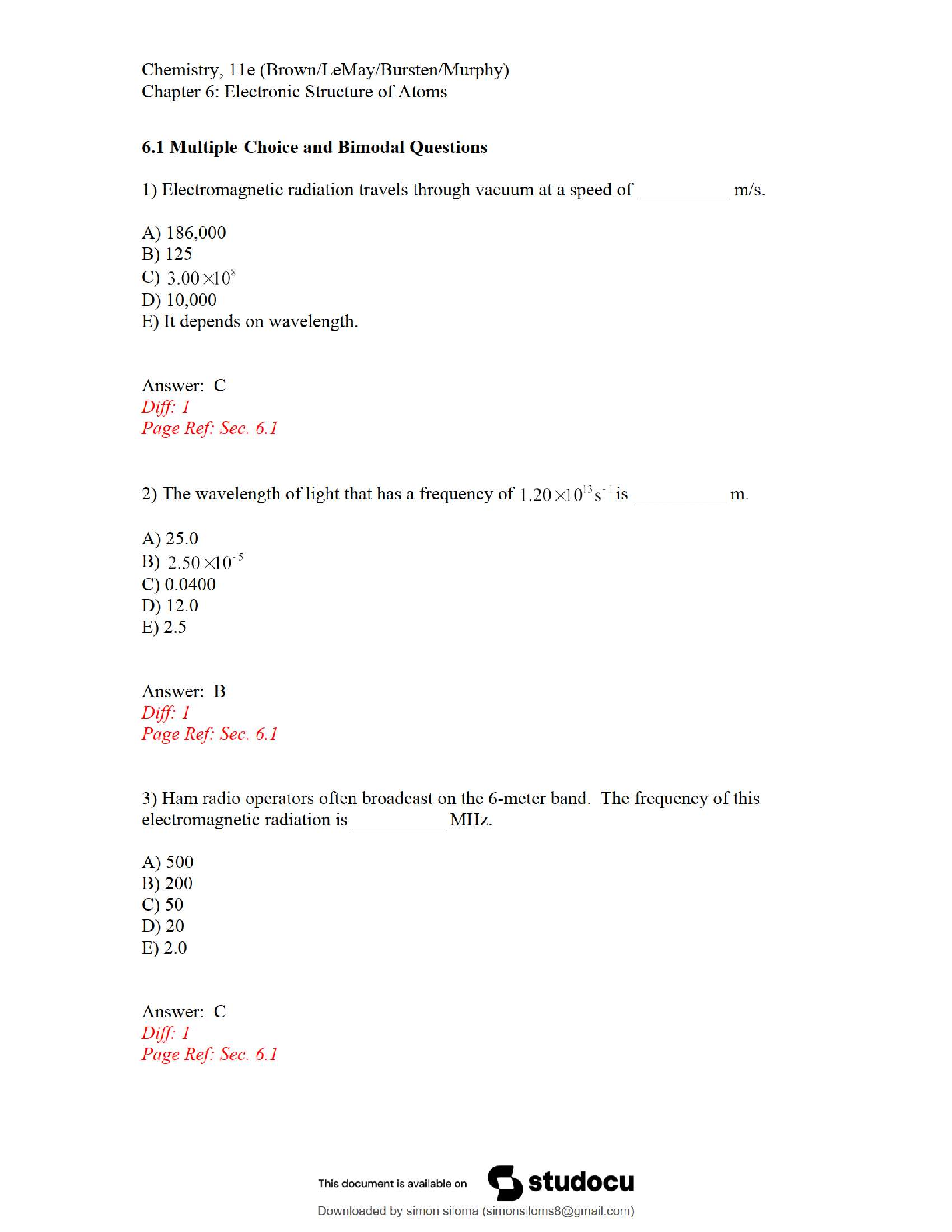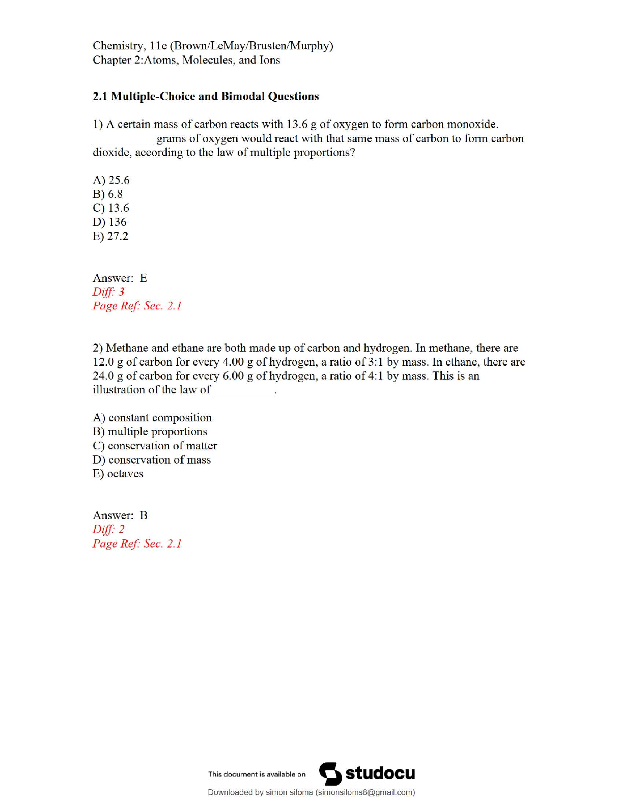 Chemistry > QUESTIONS & ANSWERS > CHEM 101-Straighterline Exam 1. 100% Accurate Answers. Graded A + (All)