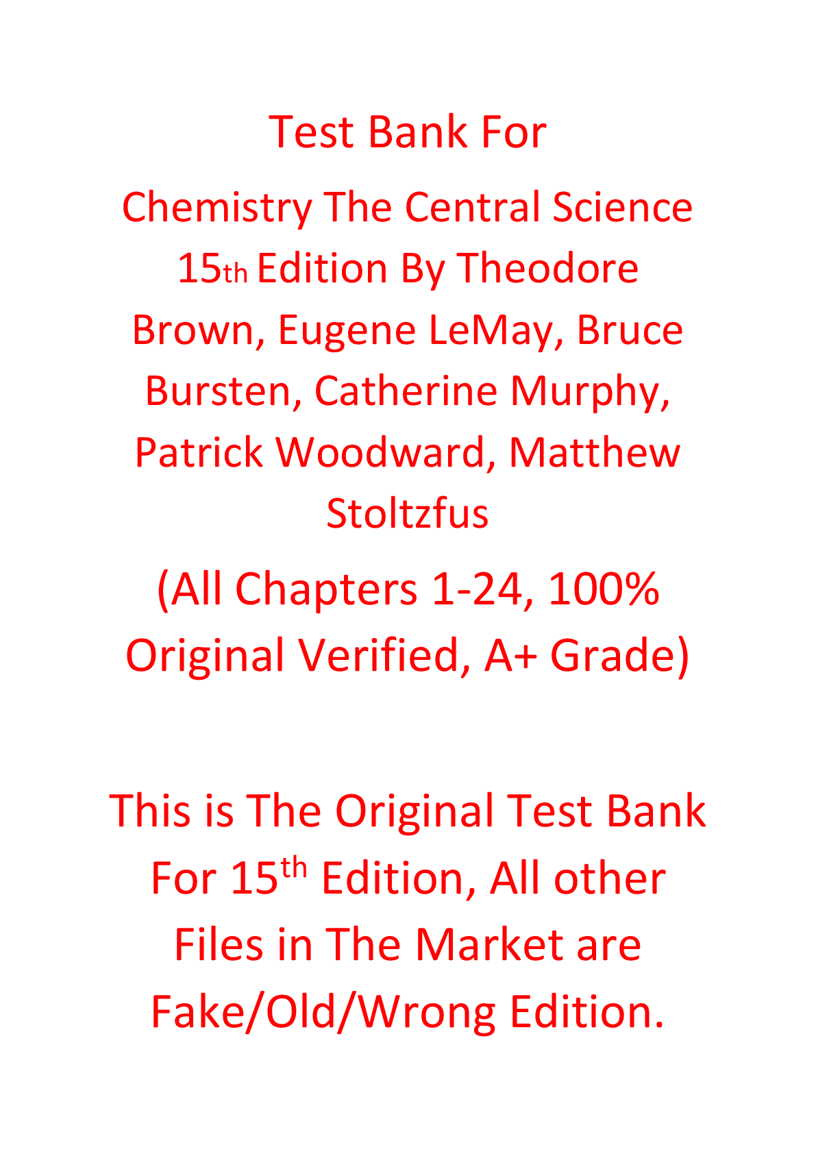 Chemistry > TEST BANKS > Test Bank For Chemistry The Central Science 15e Theodore Brown, Eugene LeMay, Bruce Bursten, Catherine Murphy, Patrick Woodward, Matthew Stoltzfus (All)