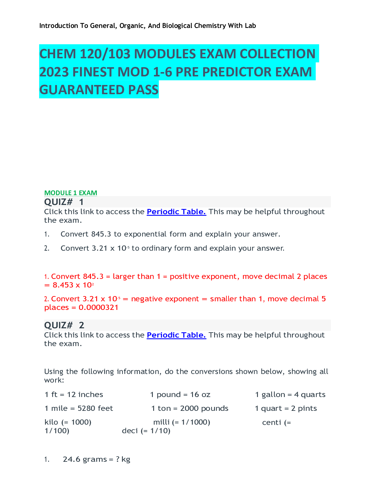 Chemistry > EXAM > CHEM 120/103 MODULES EXAM COLLECTION 2023 FINEST MOD 1-6 PRE PREDICTOR EXAM GUARANTEED PASS (All)