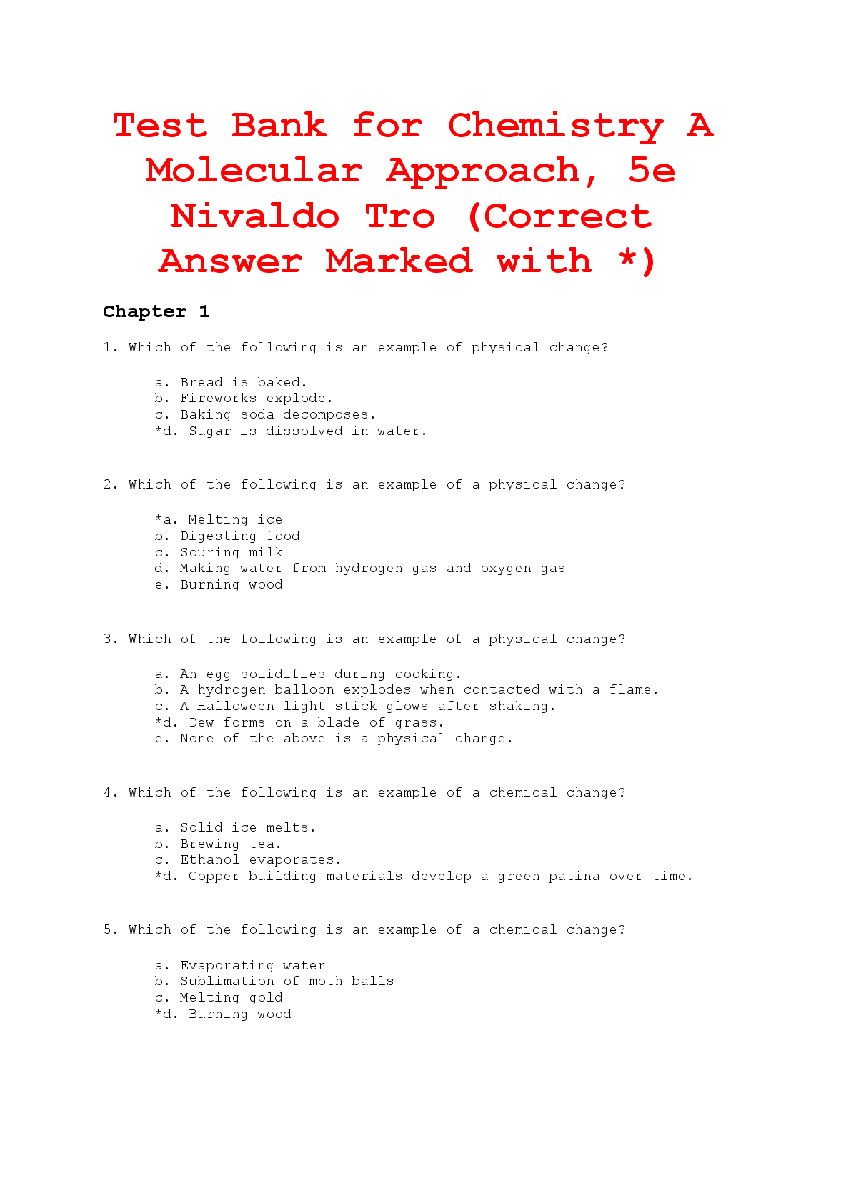 Chemistry > TEST BANKS > Test Bank for Chemistry A Molecular Approach, 5e Nivaldo Tro (Correct Answer Marked with ) (All)
