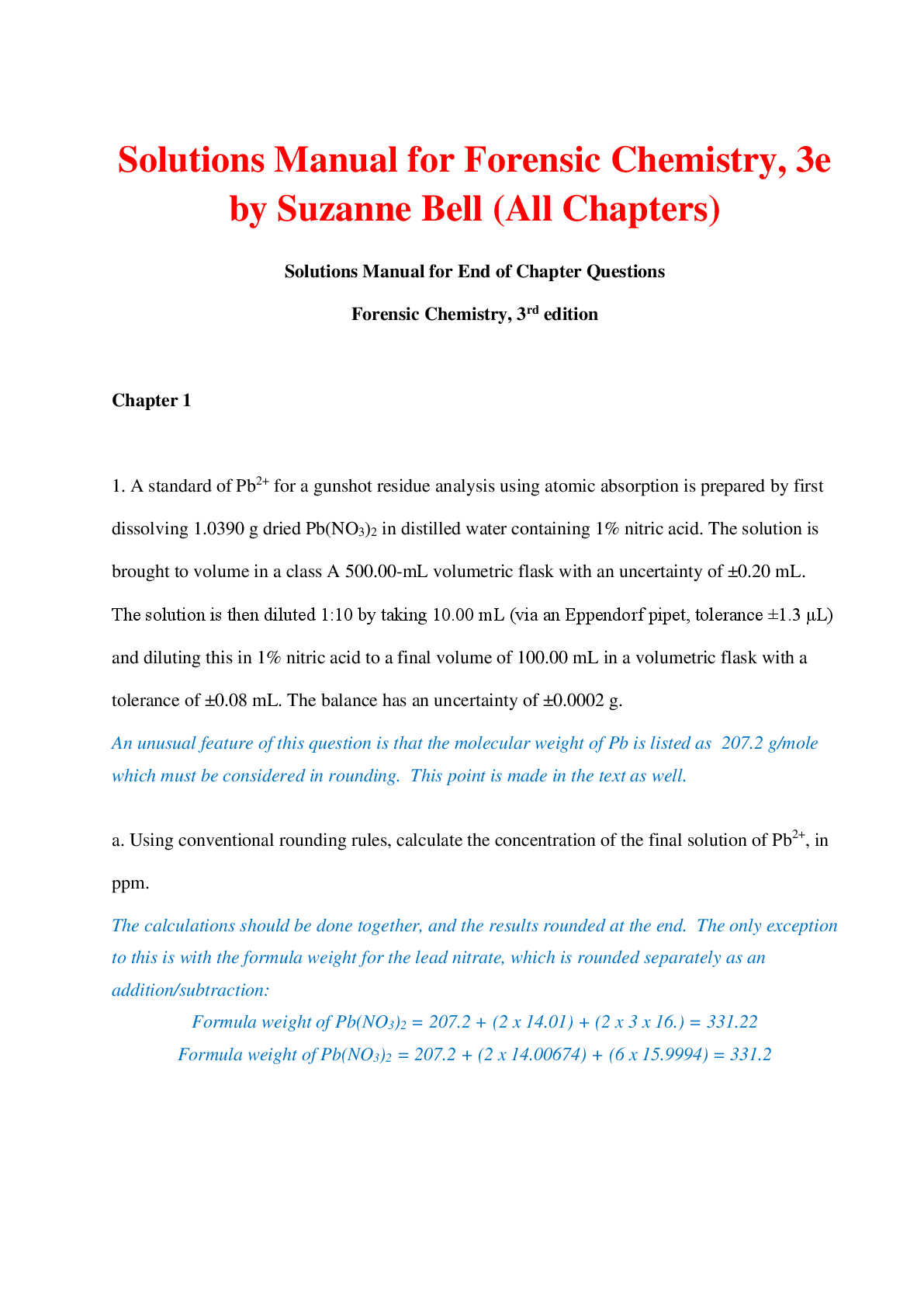 Chemistry > SOLUTIONS MANUAL > Solutions Manual for Forensic Chemistry, 3rd Edition By Suzanne Bell (All)