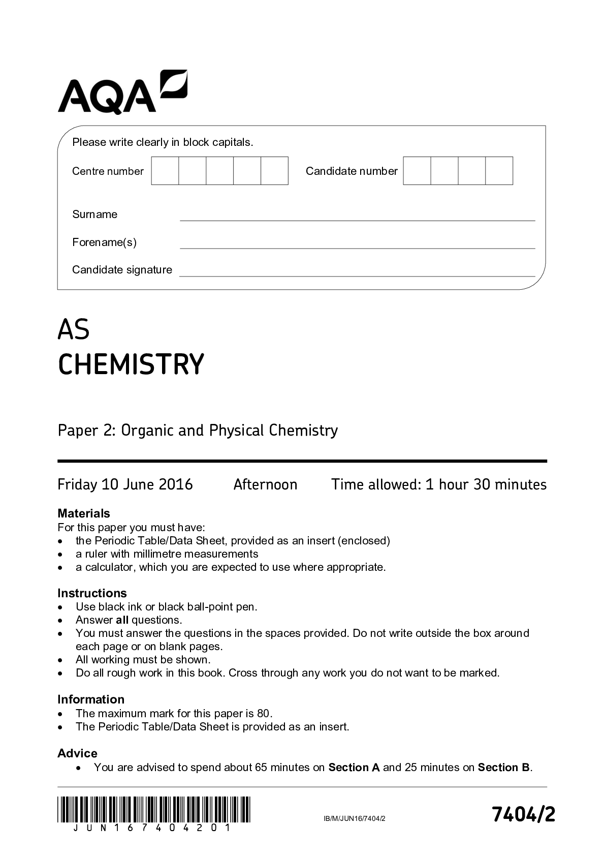 Chemistry > EXAM > AQA CHEMISTRY : Paper 2 ;Organic and Physical Chemistry (All)