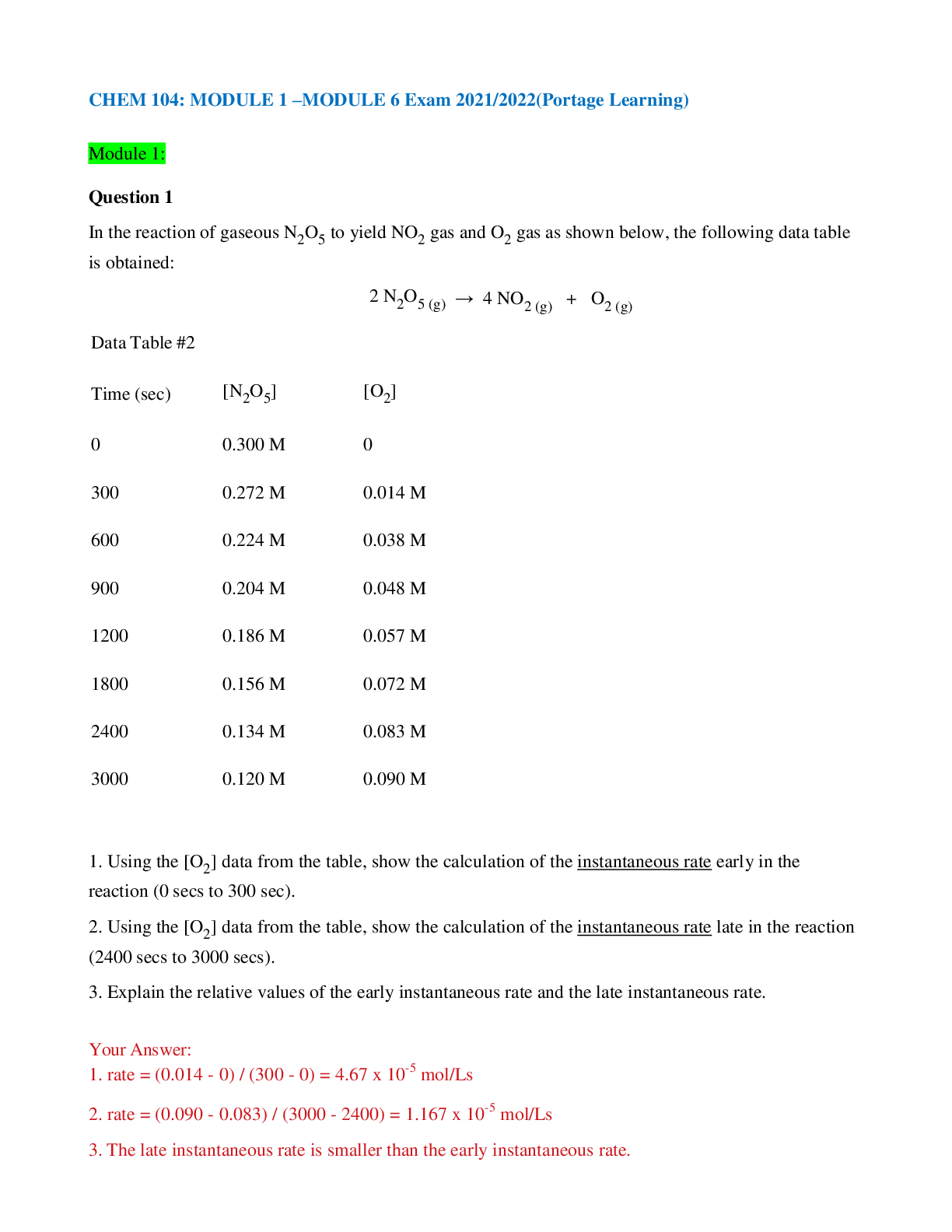 Chemistry > EXAM > CHEM 104: MODULE 1 –MODULE 6 Exam 2021/2022(Portage Learning) (All)