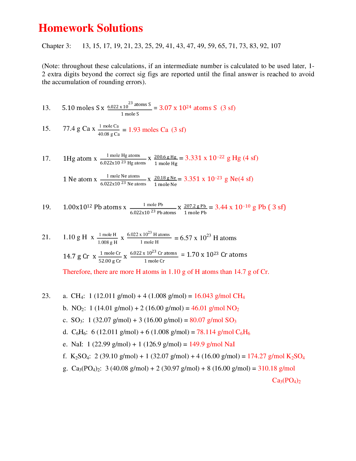 Chemistry > EXAM > Portage Learning CHEM 108: Chapter 3: Homework Solutions (All)