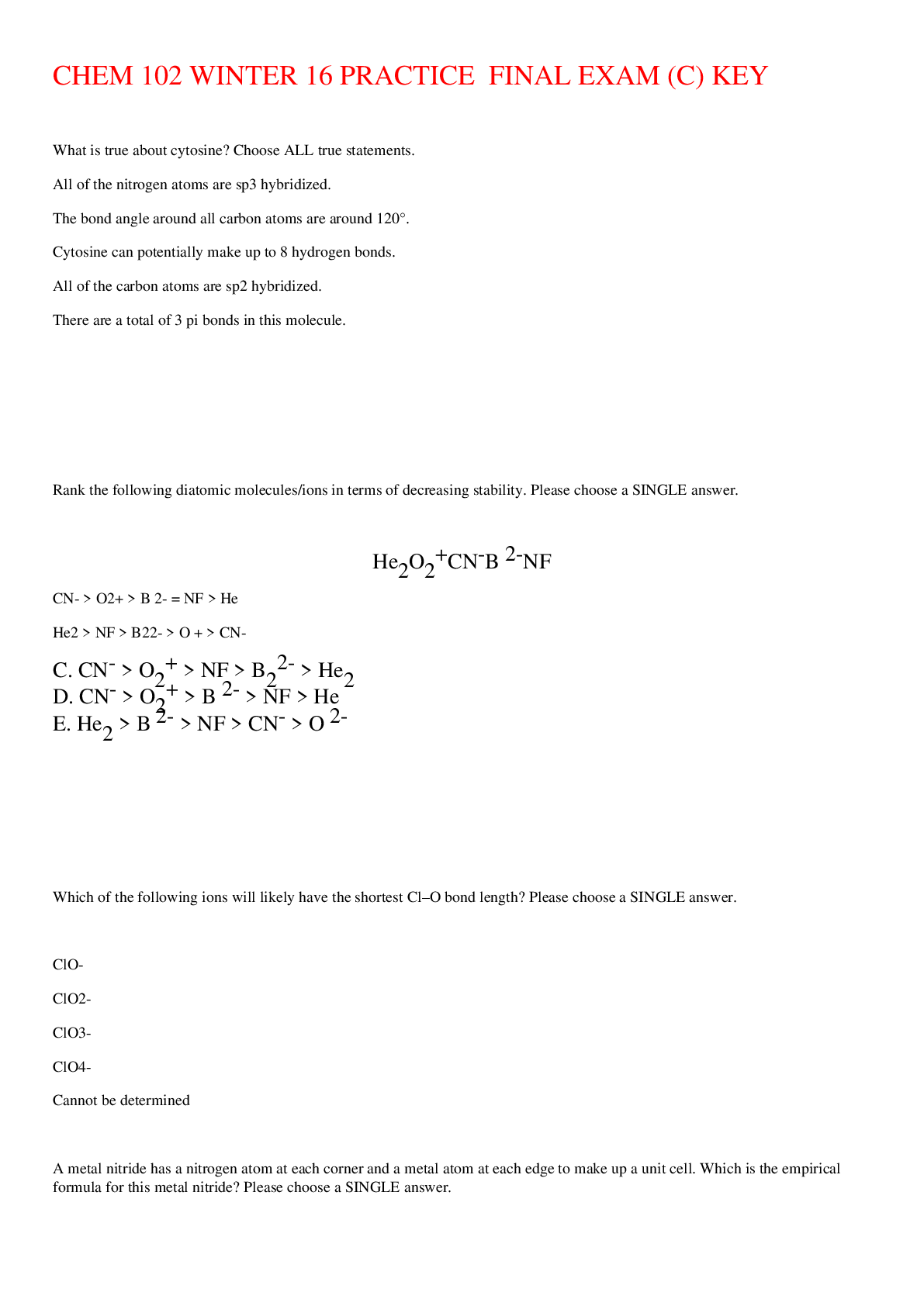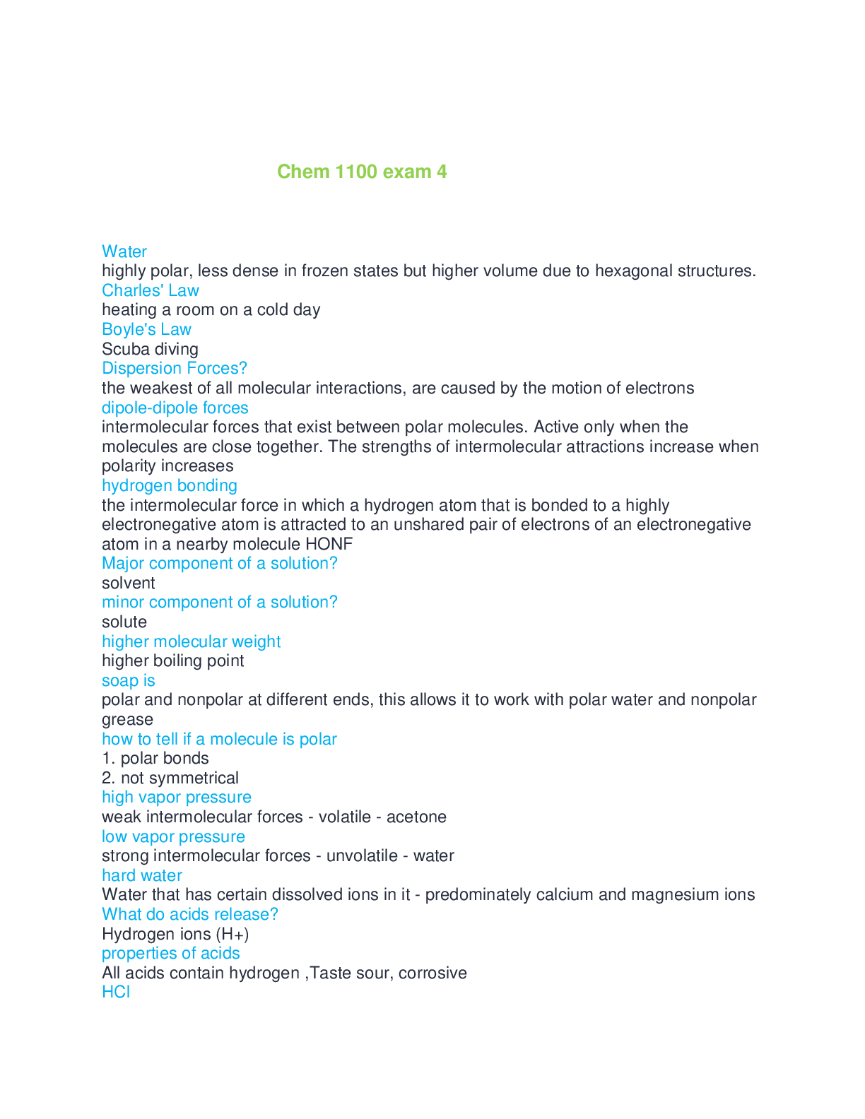 Chemistry > EXAM > Chem 1100 exam 4 questions and answers Graded A+ complete solution 2024/2025 (All)