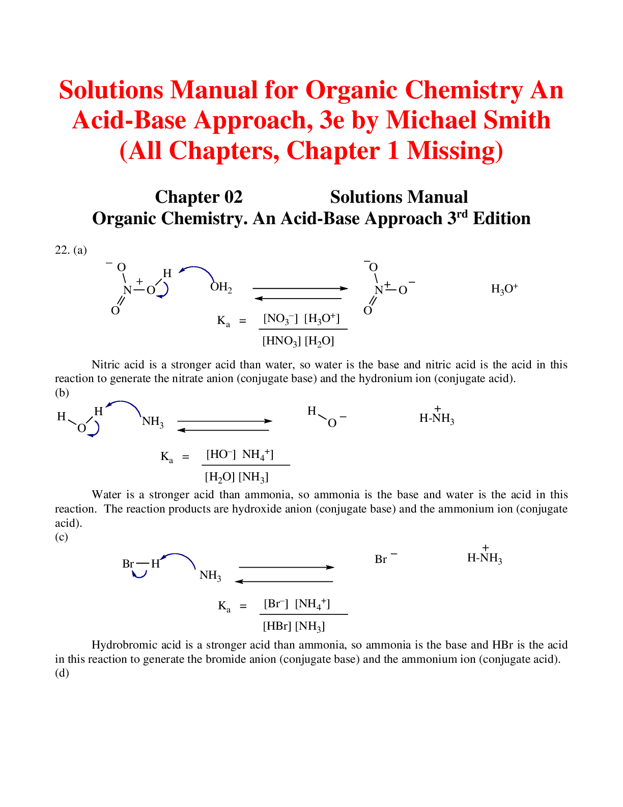 Chemistry > SOLUTIONS MANUAL > Organic Chemistry An Acid-Base Approach, 3e by Michael Smith (Solutions Manual) (All)
