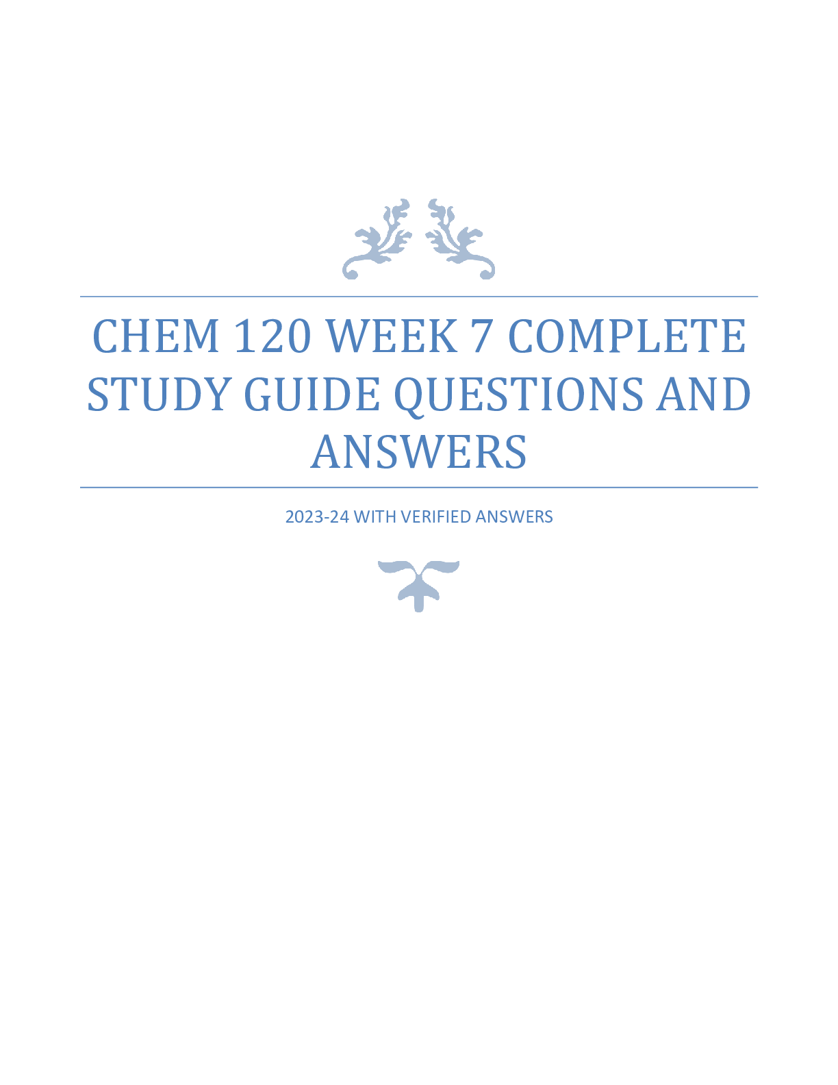 Chemistry > EXAM > CHEM 120 WEEK 7 COMPLETE STUDY GUIDE QUESTIONS AND ANSWERS (All)