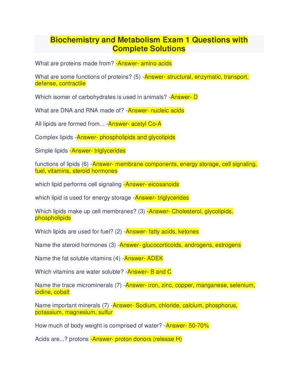 BioChemistry > QUESTIONS & ANSWERS > Biochemistry and Metabolism Exam 1 Questions with Complete Solutions (All)