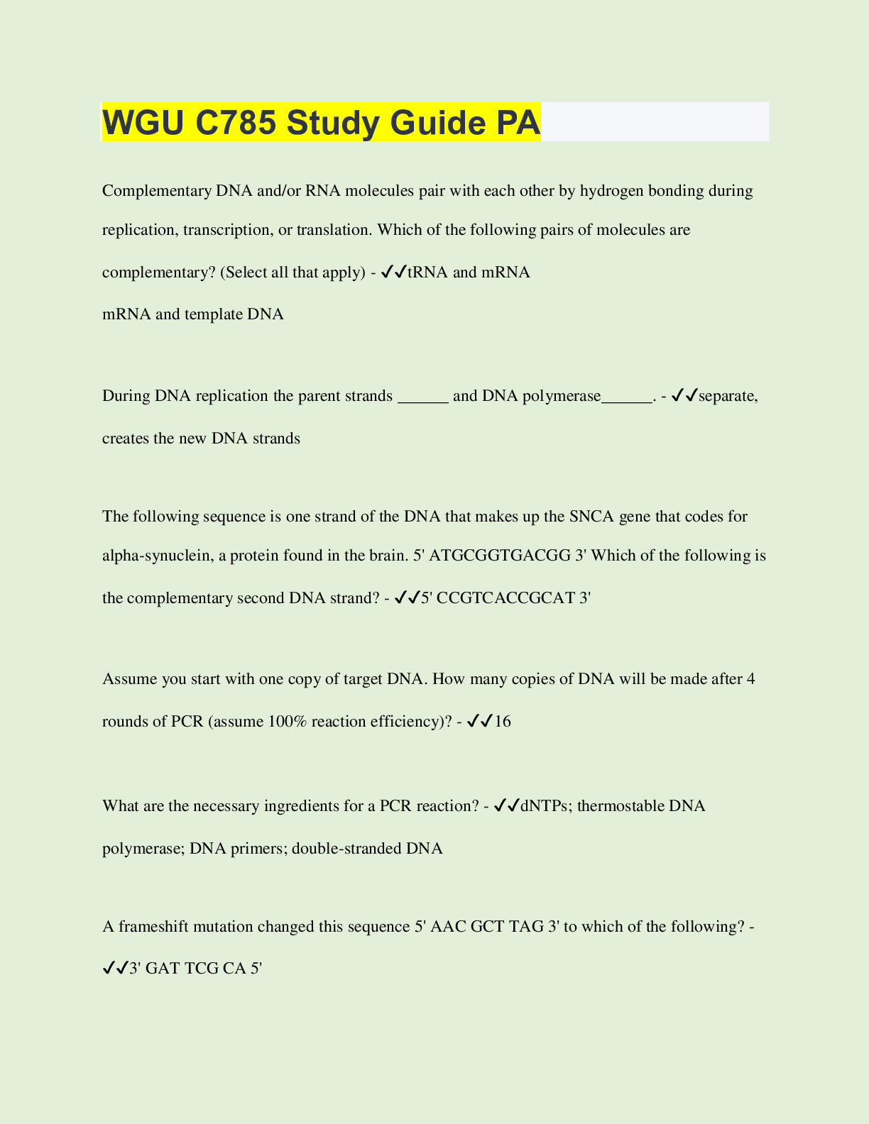 BioChemistry > EXAM > WGU C725 Possible 2022 Questions and Answers( With Complete Solution Rated A) (All)