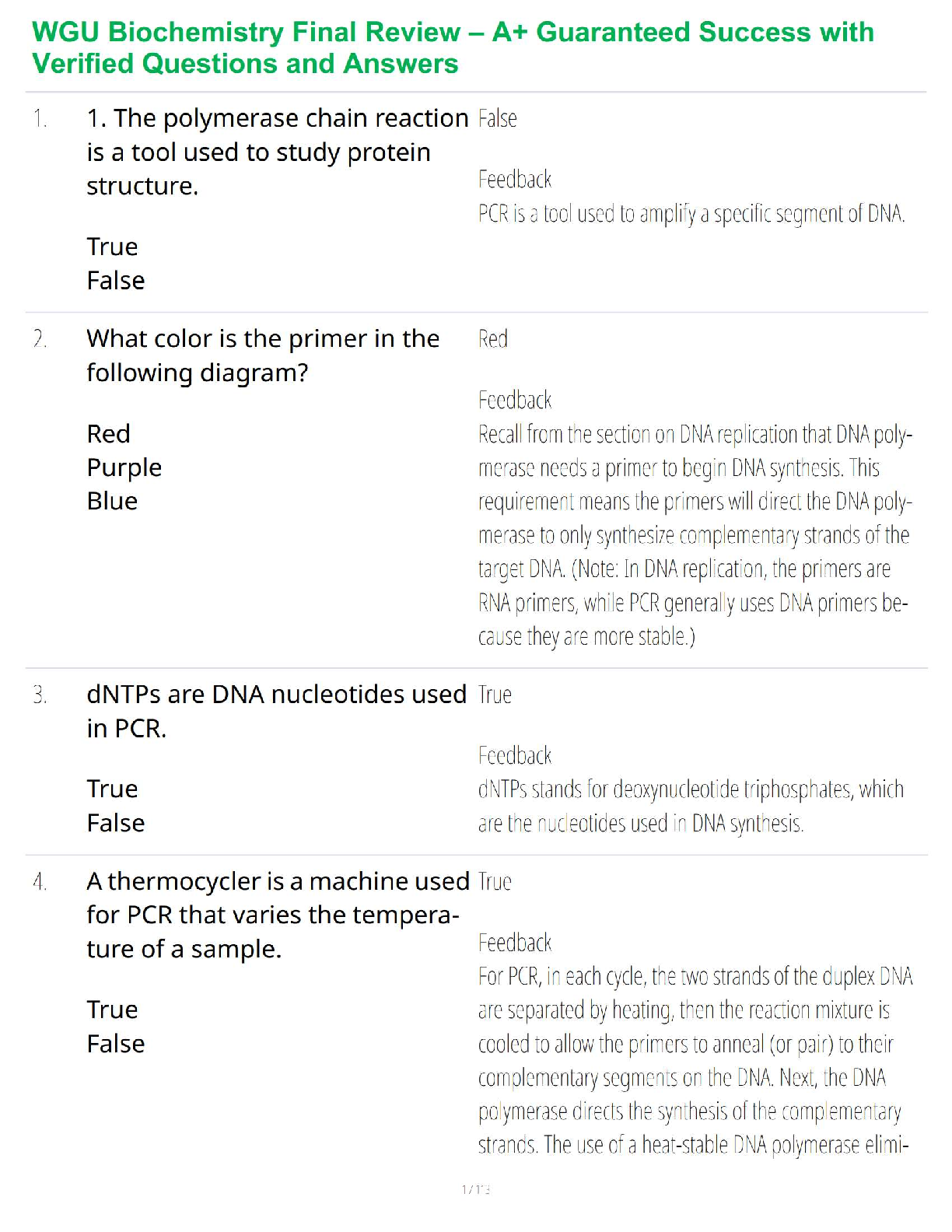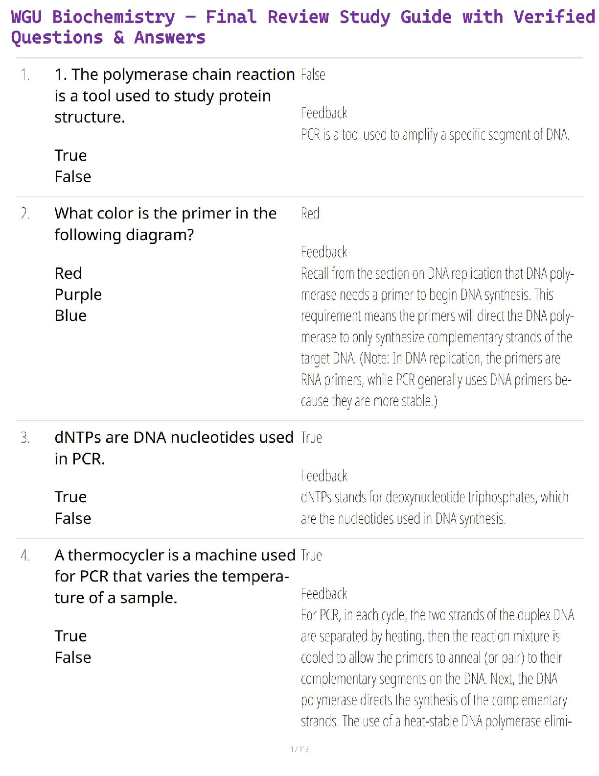 BioChemistry > STUDY GUIDE > WGU Biochemistry – Final Review Study Guide with Verified Questions & Answers (All)