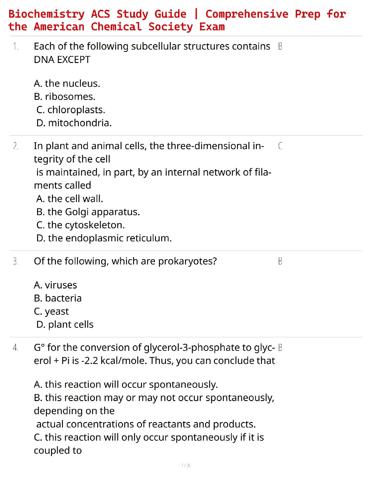 BioChemistry > STUDY GUIDE > Biochemistry ACS Study Guide | Comprehensive Prep for the American Chemical Society Exam (All)