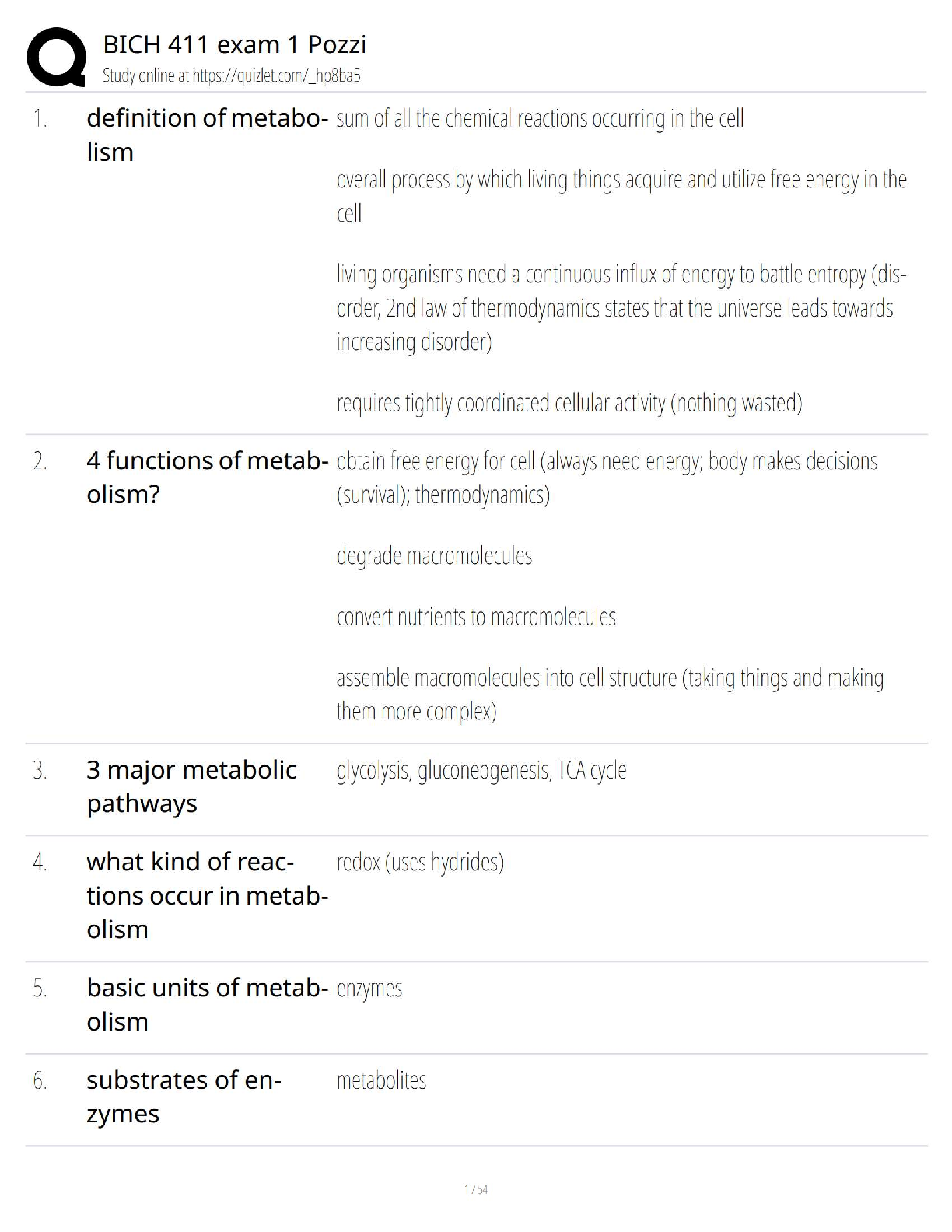 BioChemistry > QUESTIONS & ANSWERS > BICH 411 Exam 1 (Pozzi) / Biochemistry II Review & Practice Questions / 2025 Prep (All)