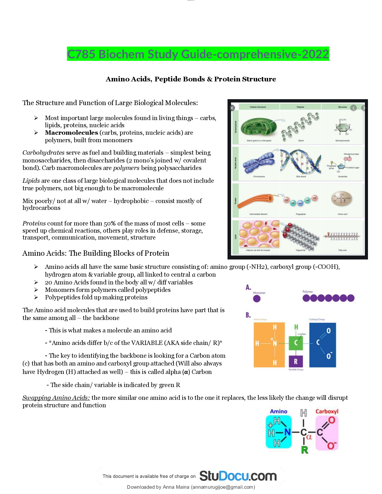 BioChemistry > STUDY GUIDE > C785 Biochem Study Guide-comprehensive-2022 (All)