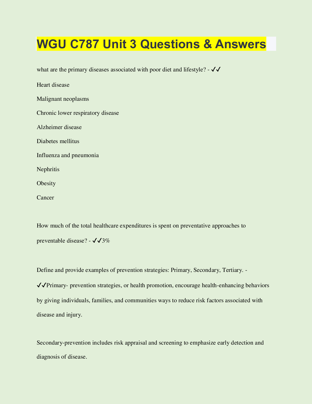 BioChemistry > EXAM > WGU C787 Unit 3 Questions & Answers | Questions with 100% Correct Answers | Verified | Latest Update (All)
