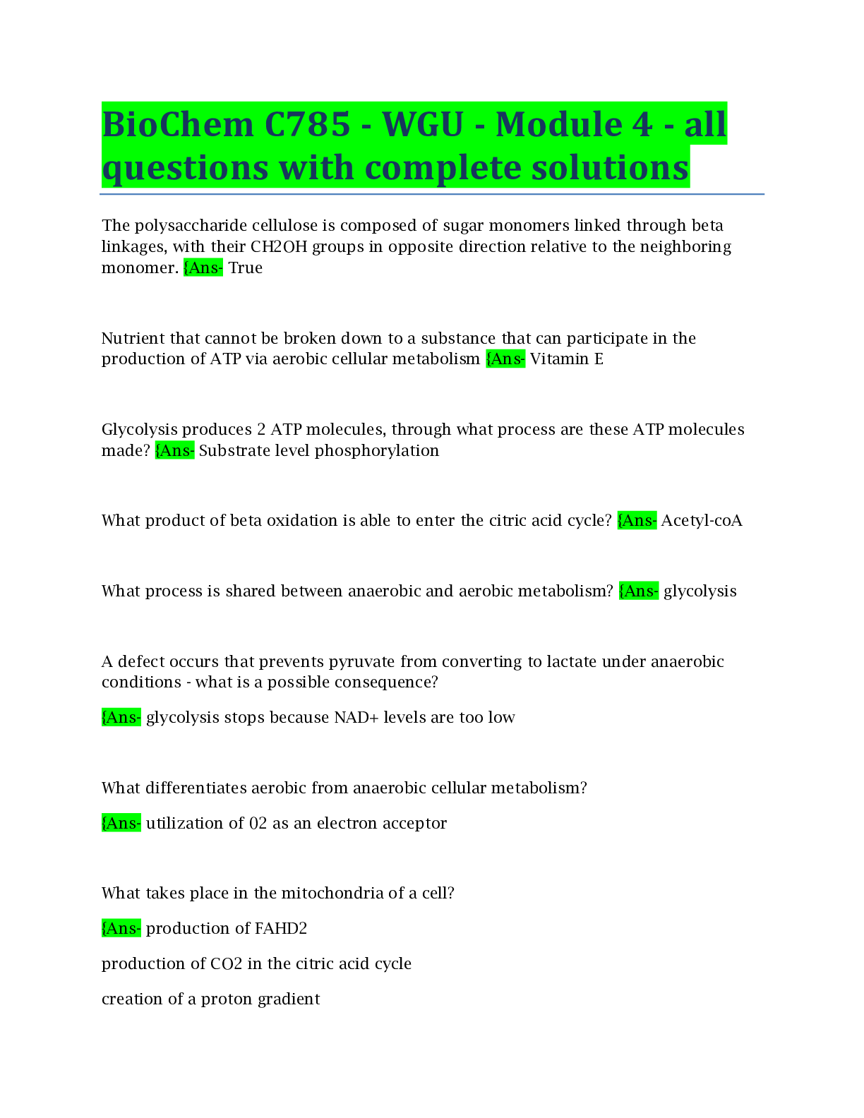 BioChemistry > EXAM > BioChem C785 - WGU - Module 5 - all questions with complete solutions (All)