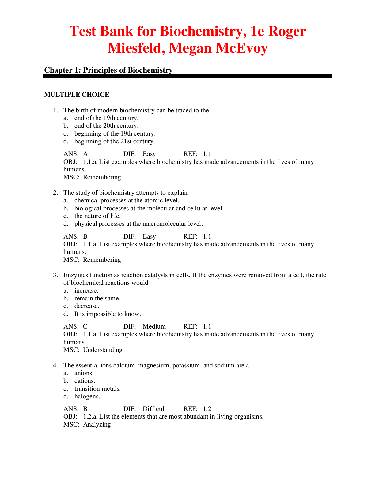 BioChemistry > QUESTIONS & ANSWERS > Bio-Chem C785 - WGU - Module 1 - all questions, Exam Questions and answers, rated A+ (All)