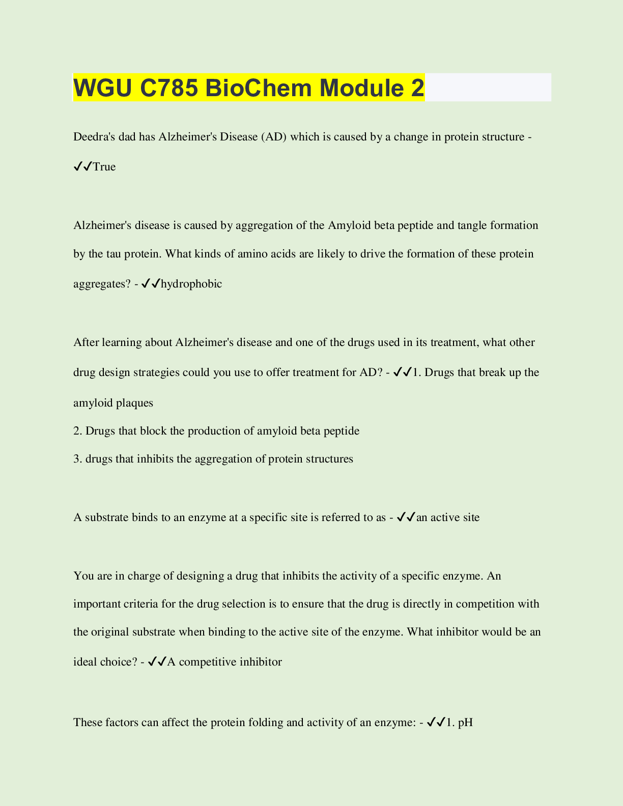 BioChemistry > QUESTIONS & ANSWERS > WGU C785 Biochem - Module 1 - All Questions | Questions with 100% Correct Answers | Verified | Latest Update (All)
